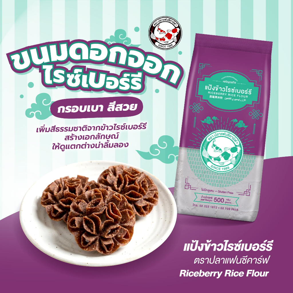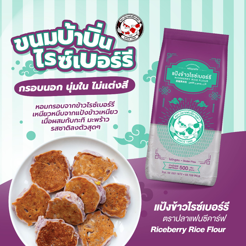 แป้งข้าวไรซ์เบอร์รี่ ตราปลาแฟนซีคาร์ฟ ขนาด 500 กรัม || Riceberry Rice Flour Fancy Carp || 黑莓果米粉 || طﺣﯾن اﻷرز راﯾ
