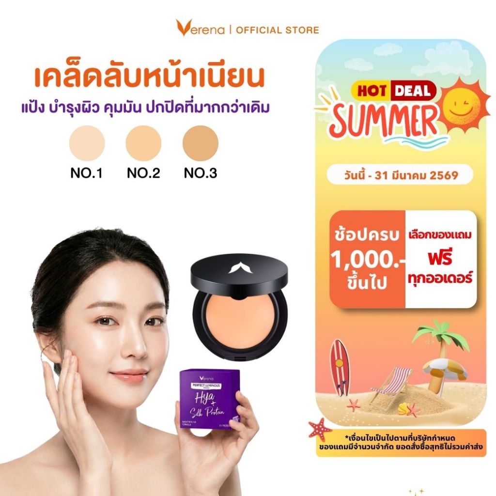 แป้งพัฟผสมไฮยาและโปรตีนใยไหม Verena Perfect Luminous powder (10 กรัม) 1 ตลับ [ส่งไวมากคร๊าบ]