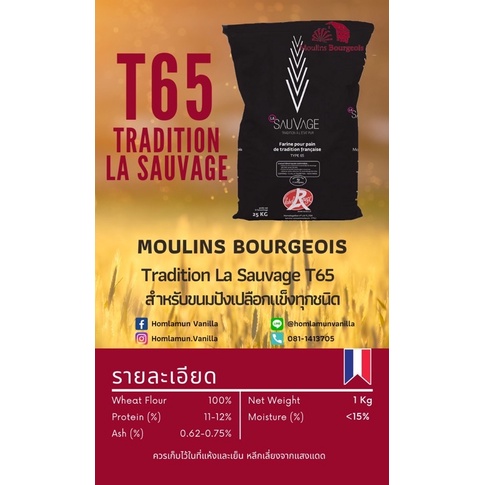 แป้ง T65 Moulins Bourgeois Tradition La Sauvage (Lebel Rogue) T65 แป้ง T65 ตรา มูลัง บอจัวร์ 1 Kg