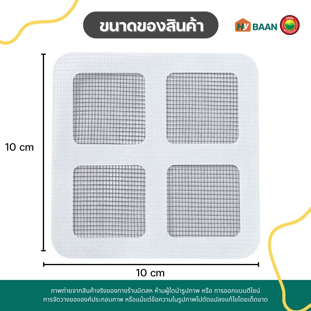 แผ่นตาข่ายซ่อมมุ้งลวด ขนาด 10x10cm Mesh repair sheet แผ่น เทป ตาข่าย ซ่อม ปะ ติด มุ้ง ลวด กาวเหนียว ติดแน่น มิตสห Hybaan