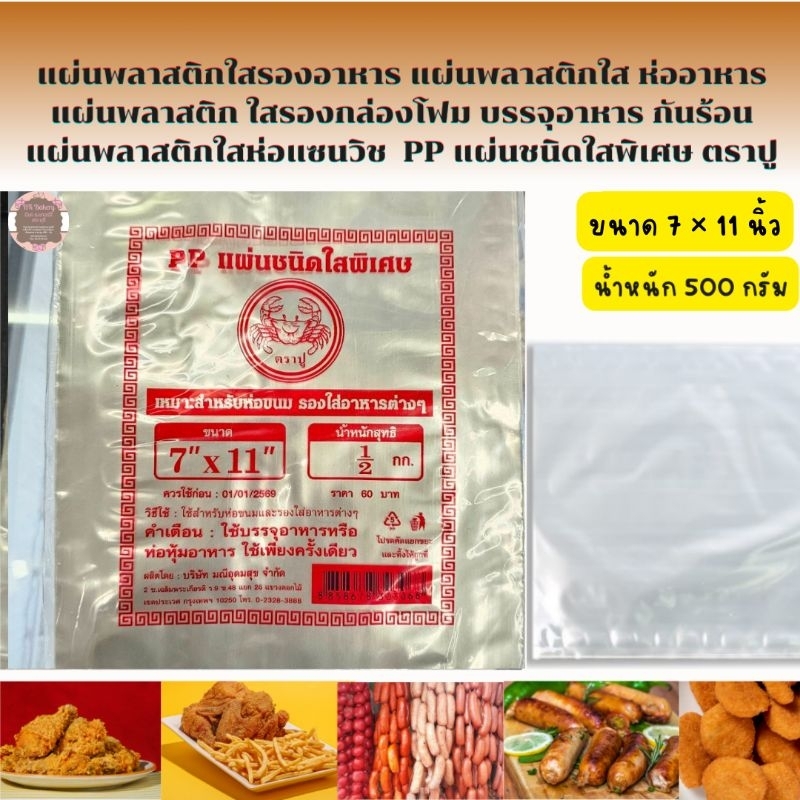 แผ่นพลาสติกใสรองอาหาร ห่ออาหาร กันร้อน ชนิดPPใสพิเศษ ตราปู🔥 7*11นิ้ว 8 * 8 นิ้ว 9 * 9 นิ้ว 10 * 10 นิ้ว🔥หนัก 500 กรัม🔥