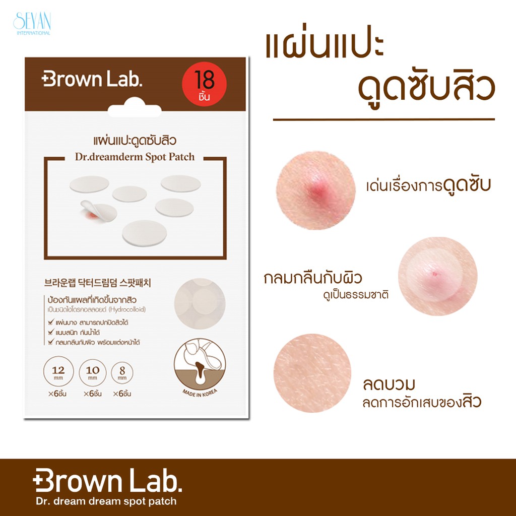 แผ่นแปะสิว Brown Lab Dr.dreamderm Spot Patch 18 ชิ้น 1 ซอง