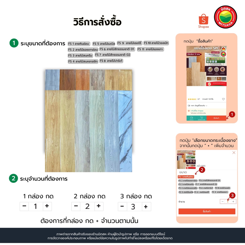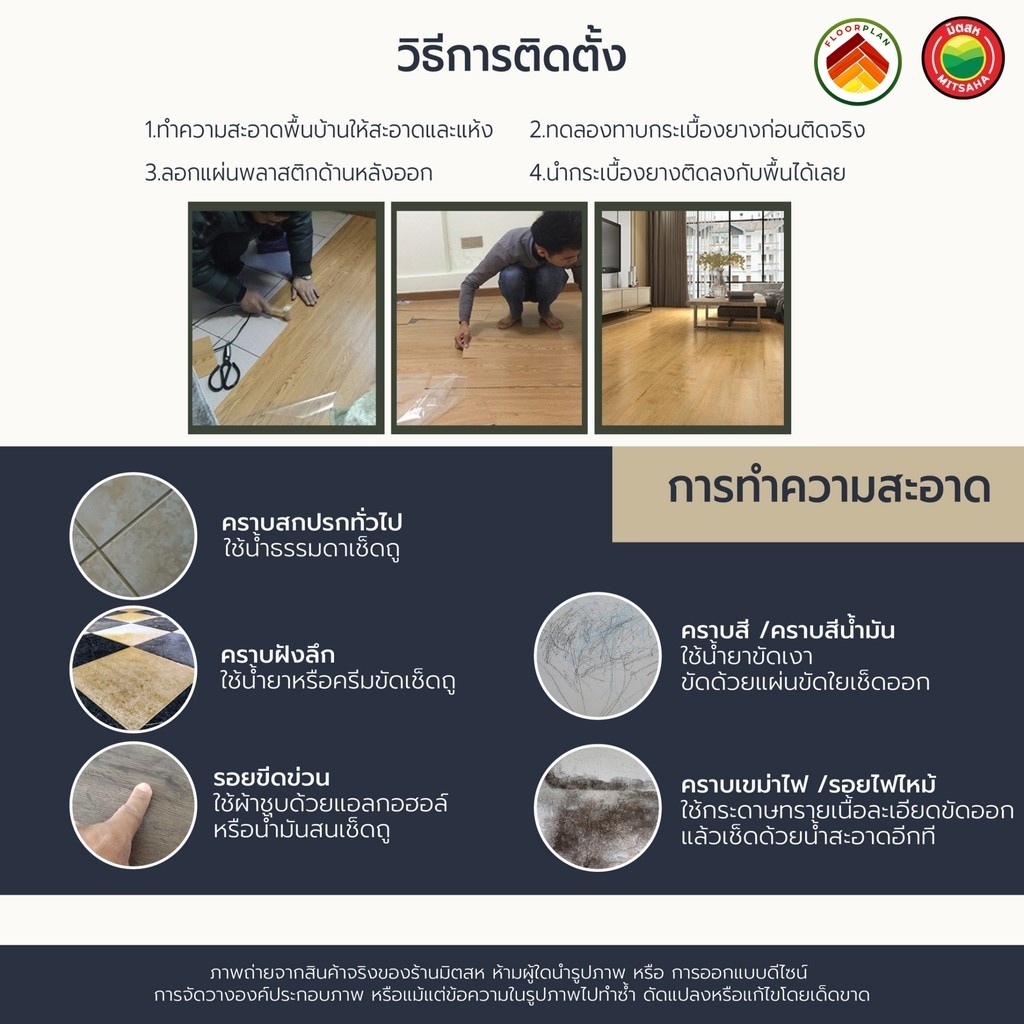 (35แผ่น/5ตรม.) กระเบื้องยาง กาวในตัว ลายไม้/หินอ่อน ยางปูพื้น 15.25x91.44 ซม. ติดตั้งง่าย SPC หนา 1.5 มิล Flooring มิตสห