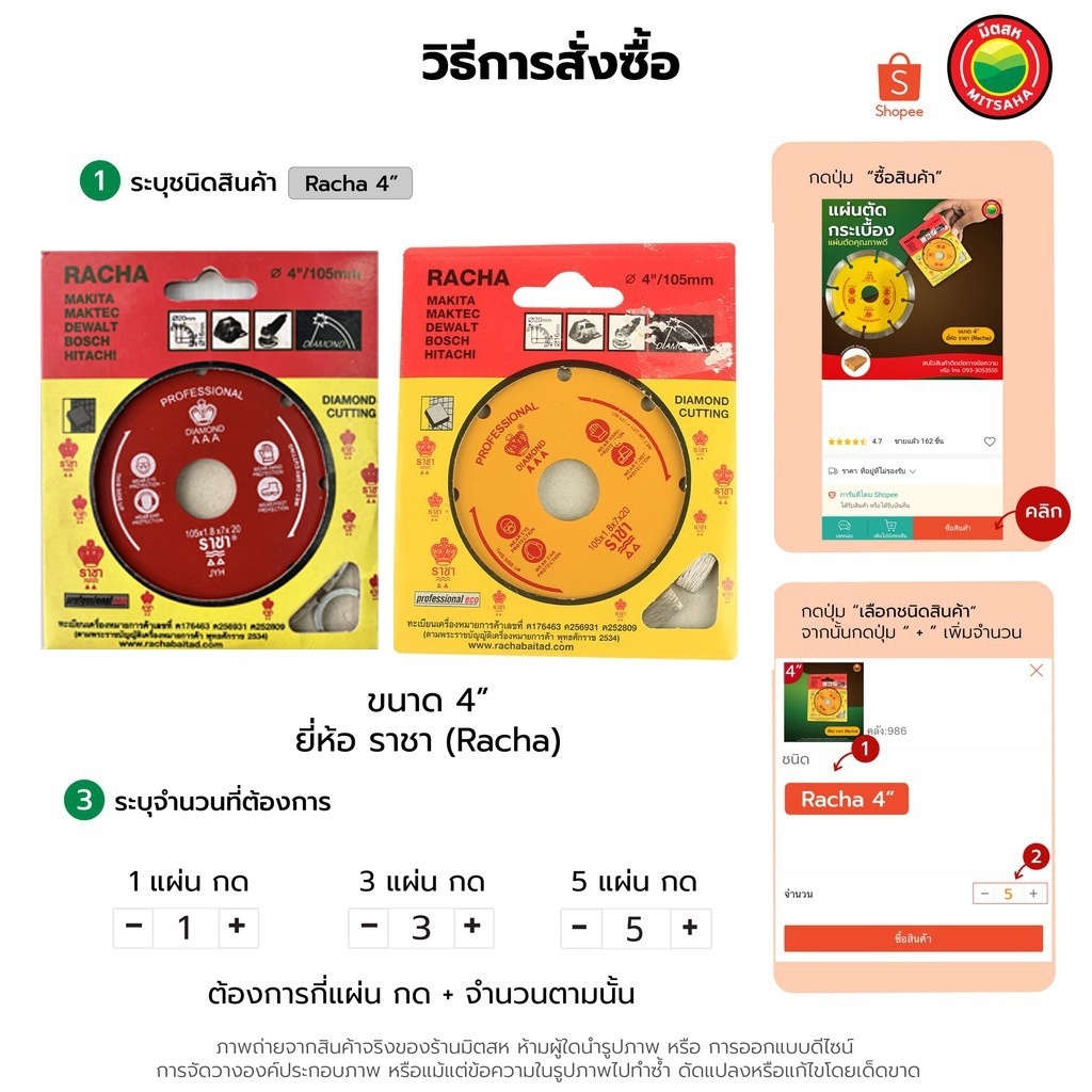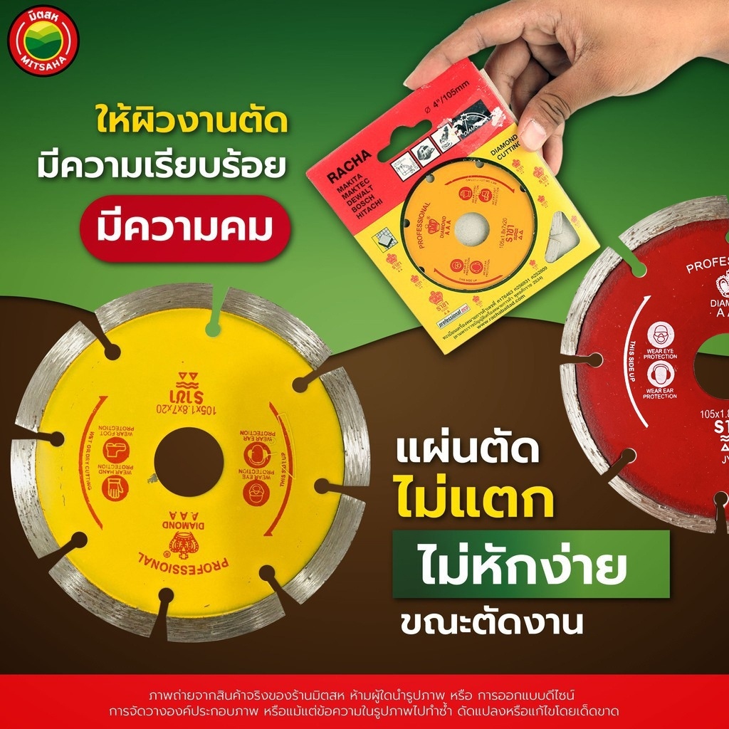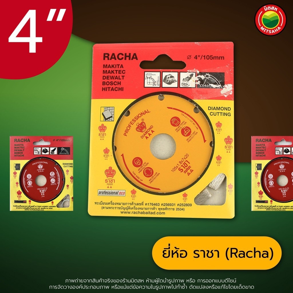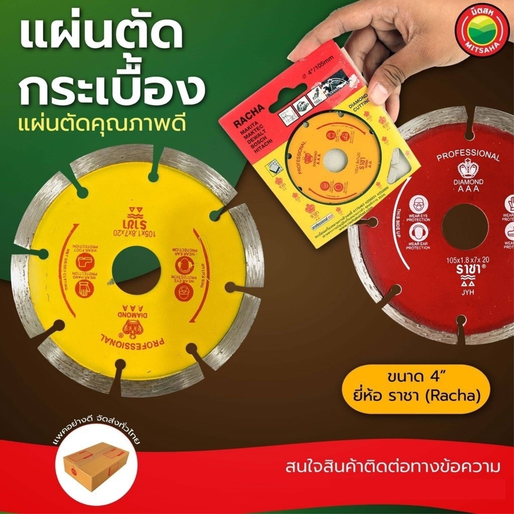 แผ่น ใบ ตัด เพชร กระเบื้อง คอนกรีต หินอ่อน แกรนิต เจียบัว 4 นิ้ว ราชา คละสี ตัดแห้ง Racha DIAMOND CUTTING BLADE คม มิตสห