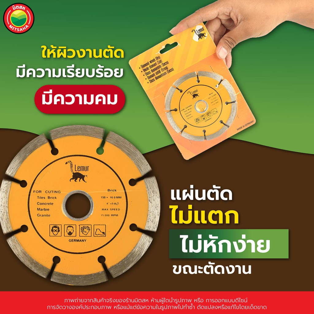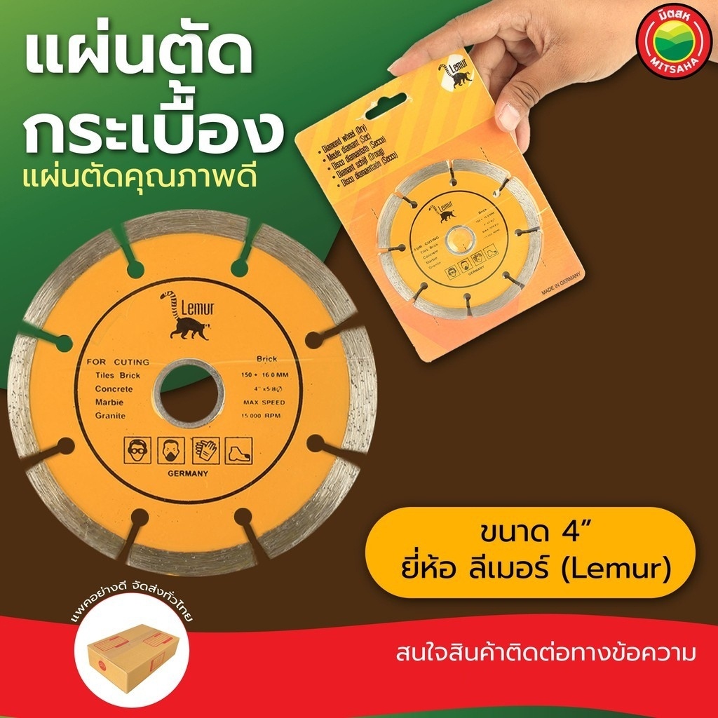 แผ่น ใบ ตัด เพชร กระเบื้อง เซรามิก คอนกรีต หินอ่อน แกรนิต 4 นิ้ว ลีเมอร์ ตัดแห้ง Lemur DIAMOND CUTTING BLADE คม มิตสห