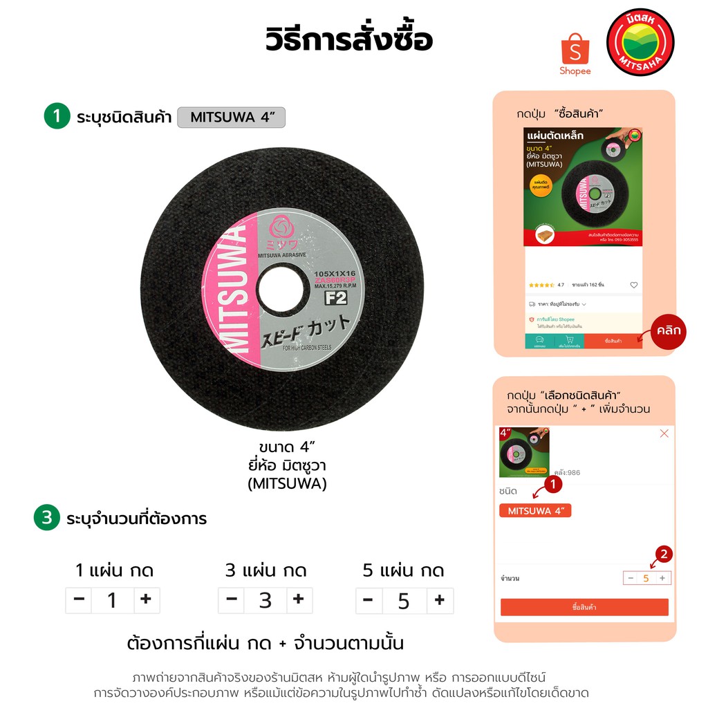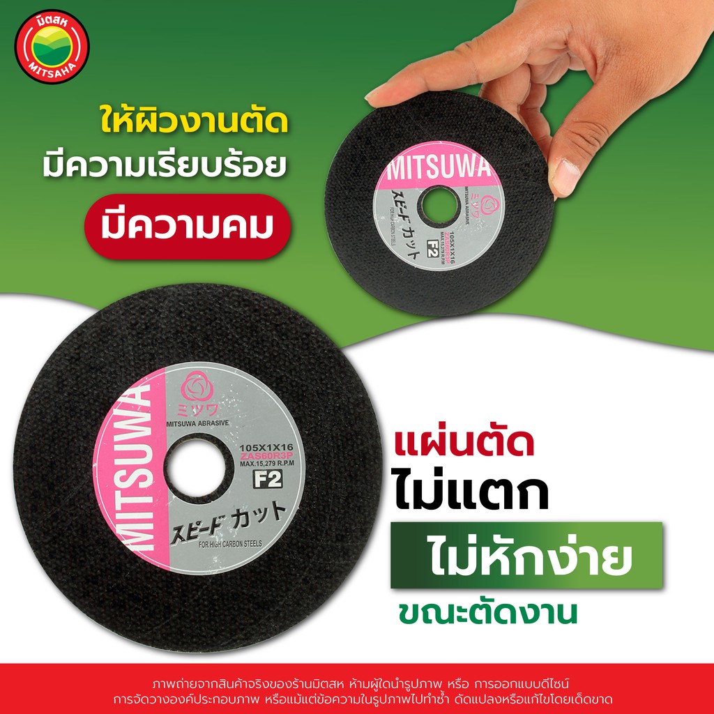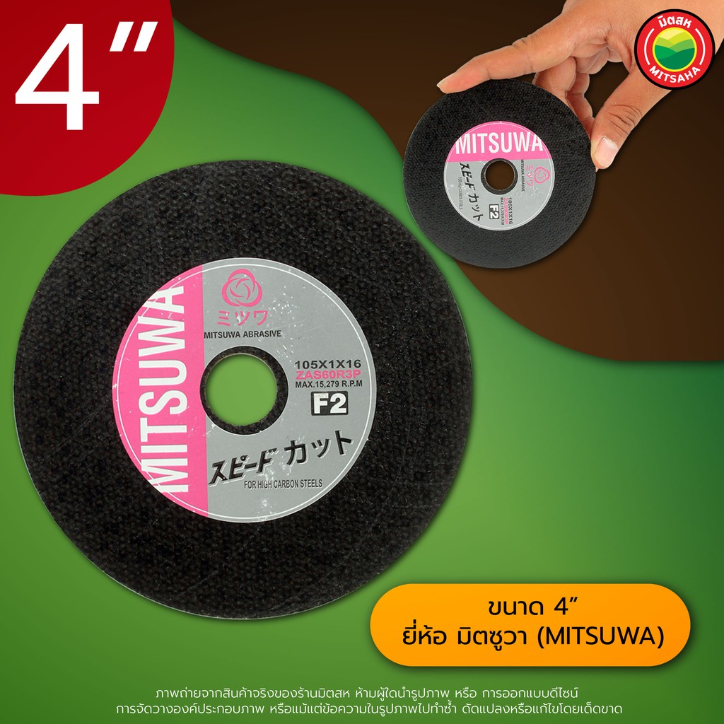 แผ่น ใบ ตัด เหล็ก ไฟเบอร์ อลูมิเนียม ใบ บาง เรียบ มิตซูวา MITSUWA 4 นิ้ว STEEL CUTTING WHEEL คม มิตสห