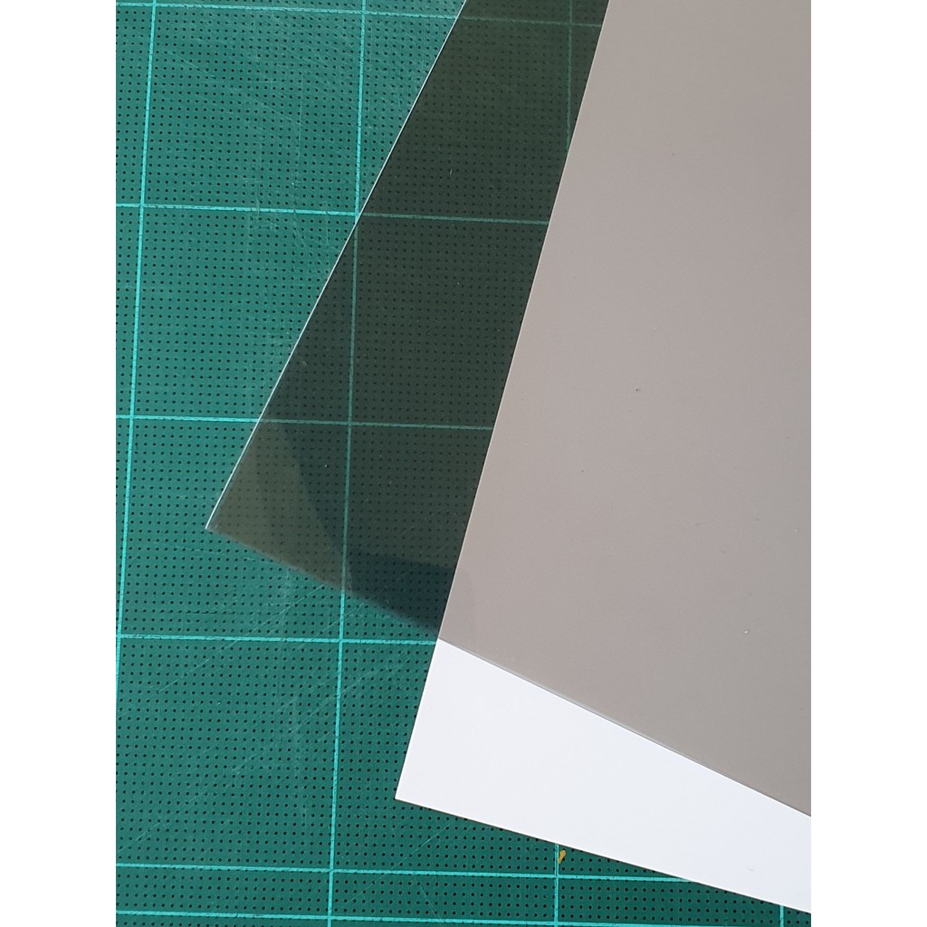 แผ่น PVC ใส ขุ่น ดำ ขาว งานโมเดล แทนกระจก พลาสติก แพทเทิร์น ขนาดประมาณ 75 x 54 ซม. หนาประมาณ 0.4มิล