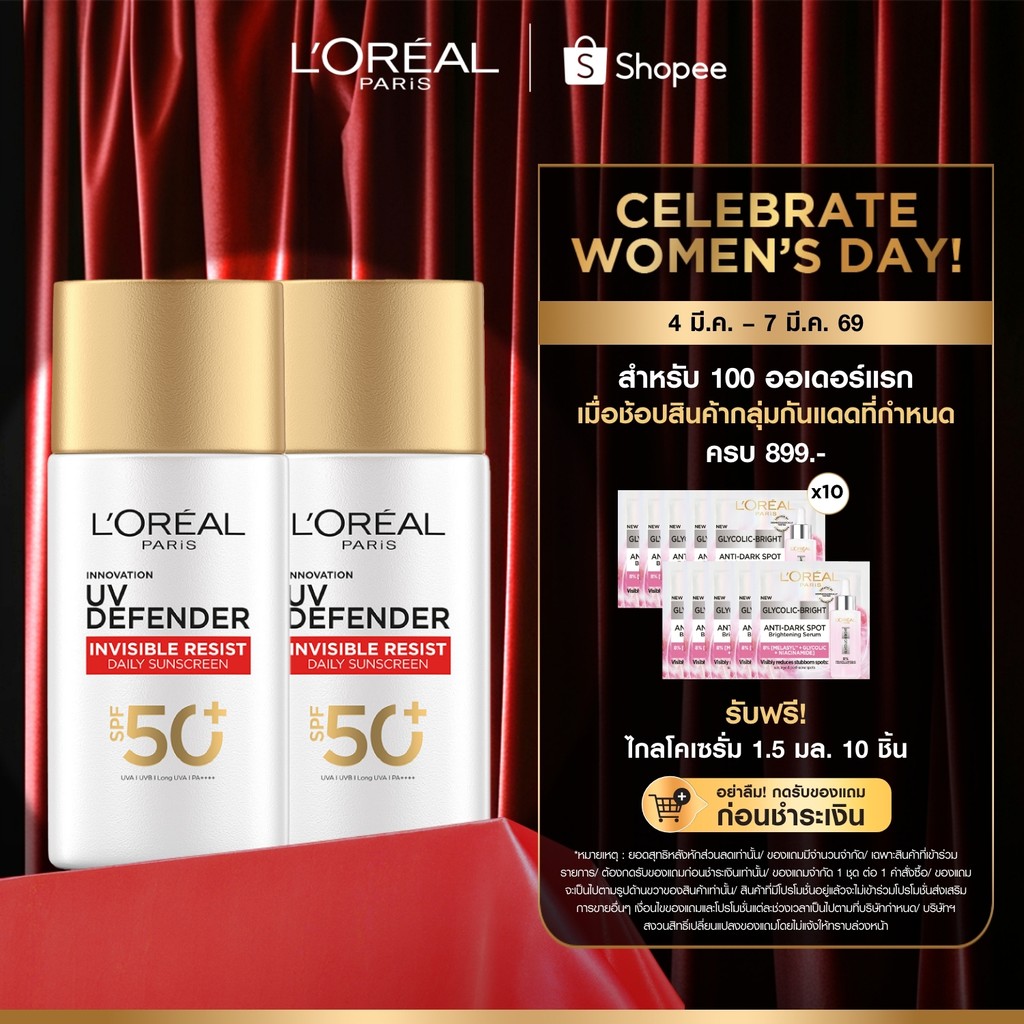 [แพ็กคู่] ลอรีอัล ปารีส L'Oréal Paris UV Defender Invisible Resist SPF50+ PA++++ 50ml กันแดดล่องหน บางเบา ไม่เหนอะหนะ