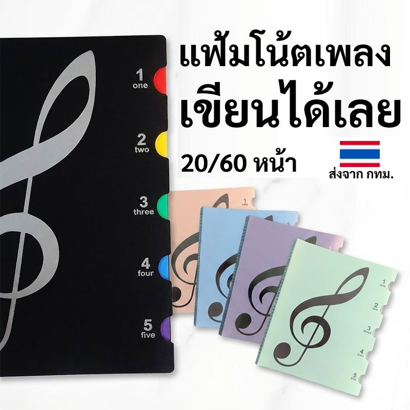 แฟ้ม โน้ตเพลง 20/60 หน้า เขียนบนโน้ตได้เลย ไม่ต้องดึงออกมา - 20/60-Sheet Music Folder – Writable A4 File with Tab Index