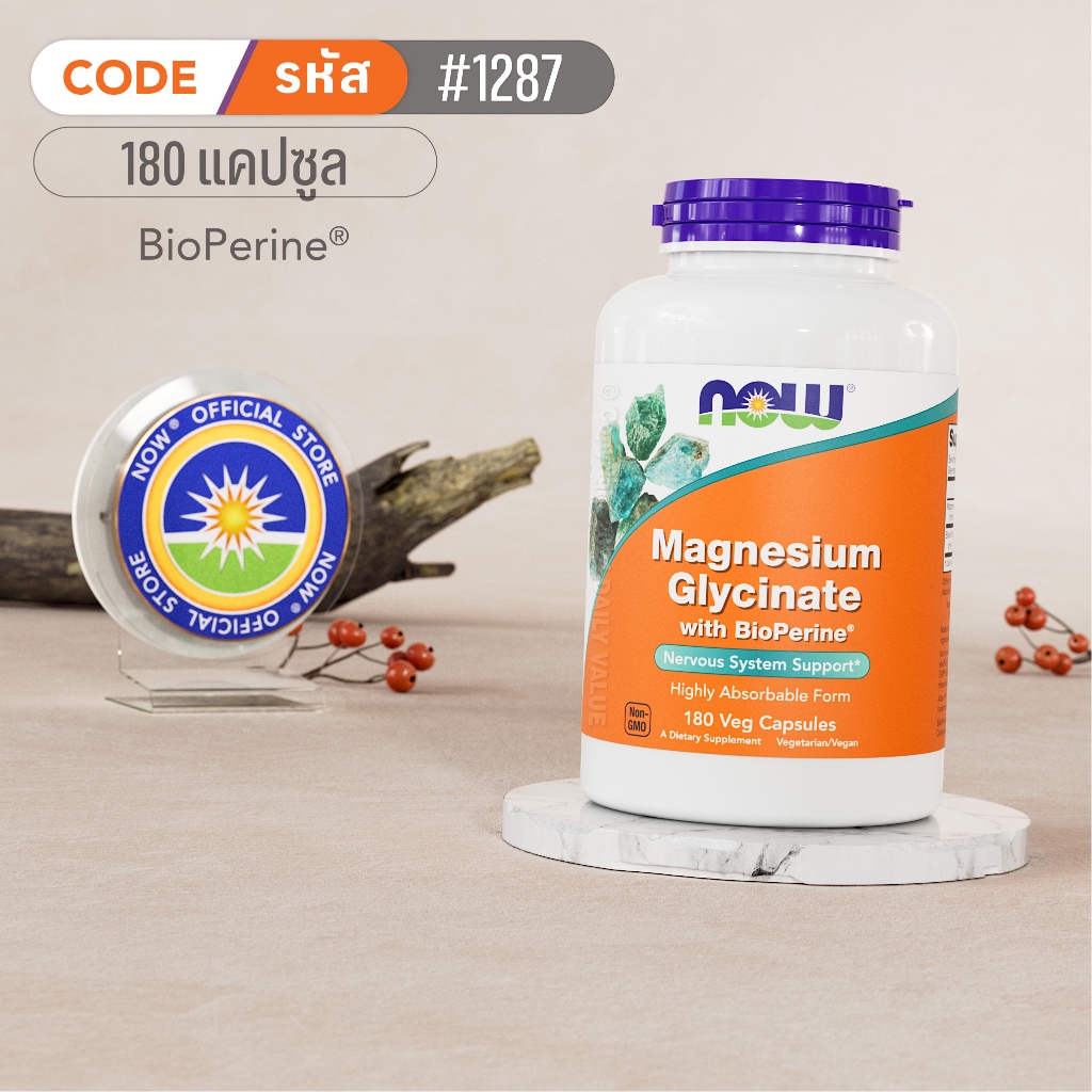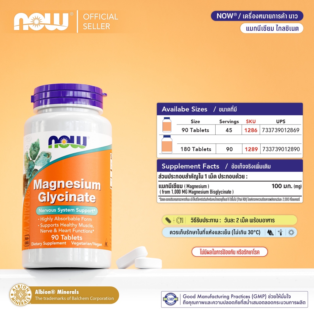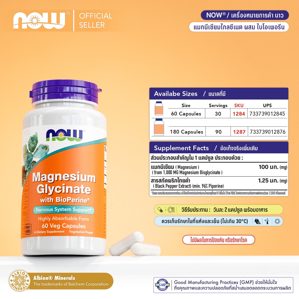 แมกนีเซียม ไกลซิเนต | Magnesium Glycinate - Magnesium Glycinate w/ BioPerine by NOW FOODS | Authentic Made in USA