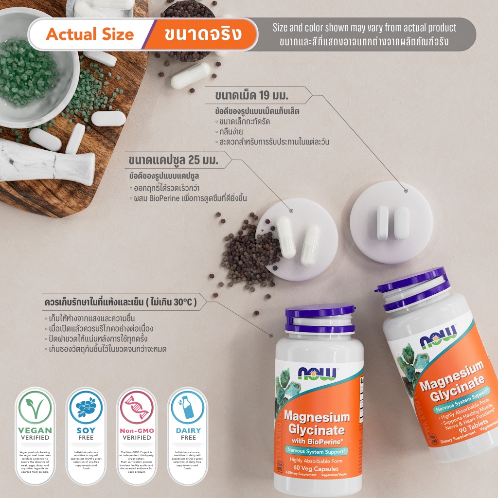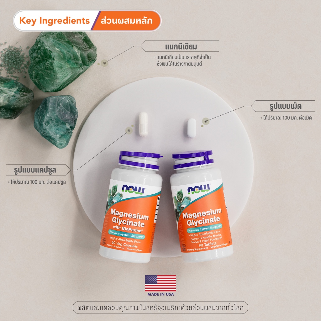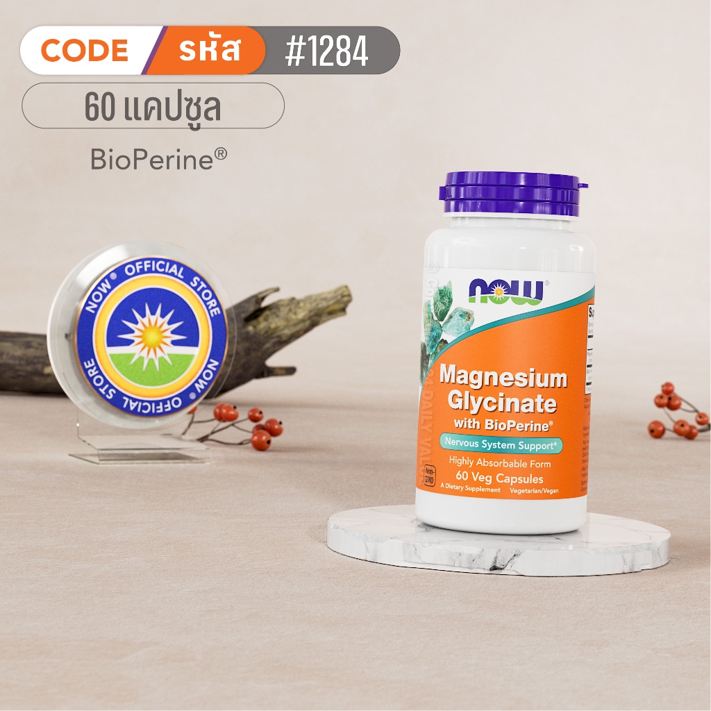 แมกนีเซียม ไกลซิเนต | Magnesium Glycinate - Magnesium Glycinate w/ BioPerine by NOW FOODS | Authentic Made in USA