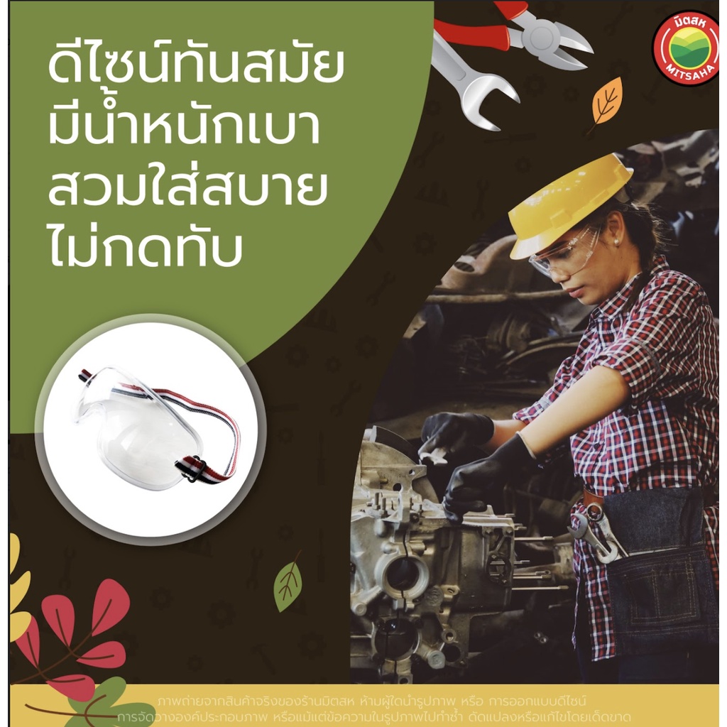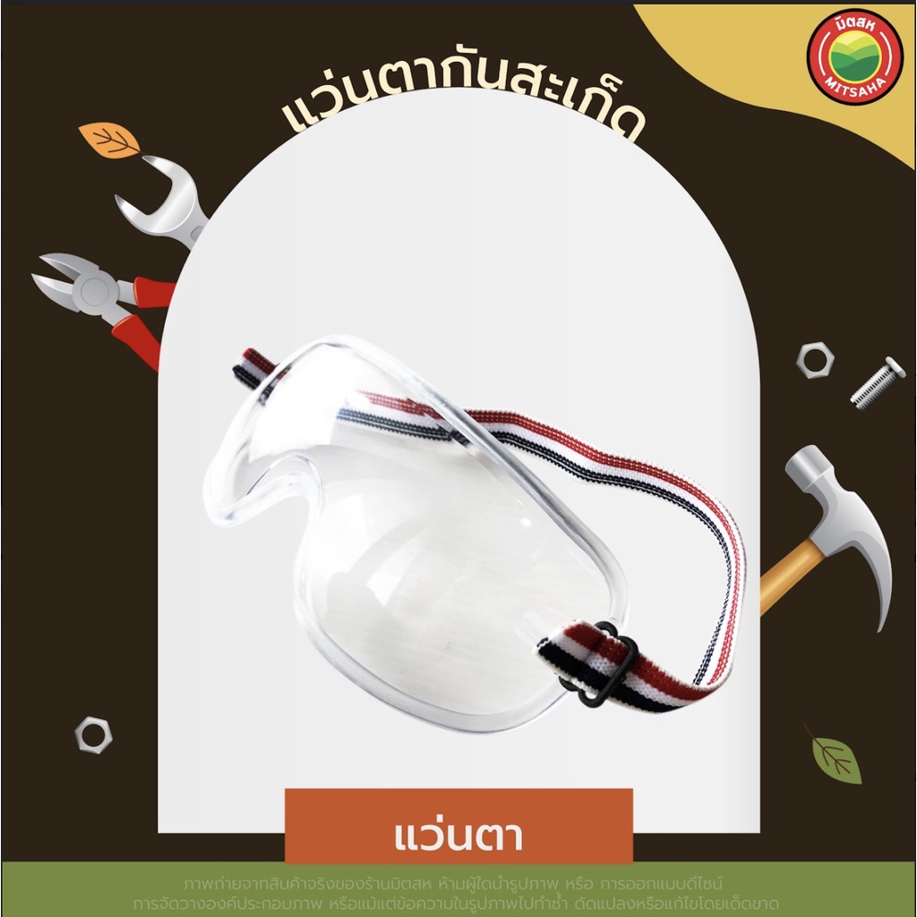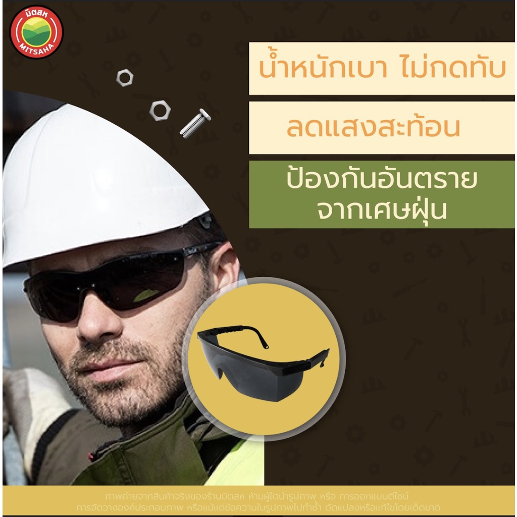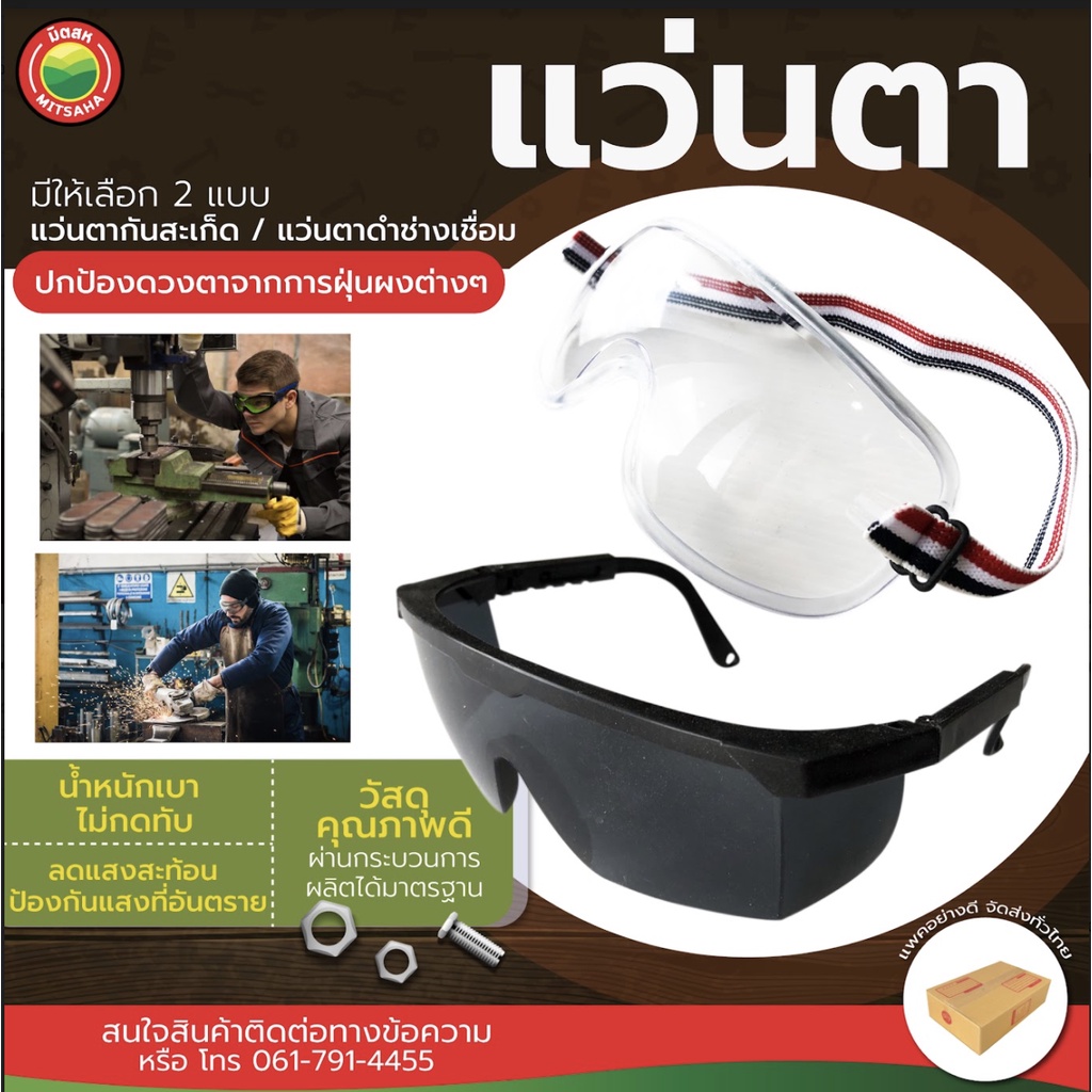 แว่นตากันสะเก็ด ช่างเชื่อม เบอร์6 SAFETY GOGGLES แว่น ตา อ๊อก เชื่อม เซฟตี้ กัน สะเก็ด ลม ฝุ่น สารเคมี เลนส์ ใส ดำ มิตสห
