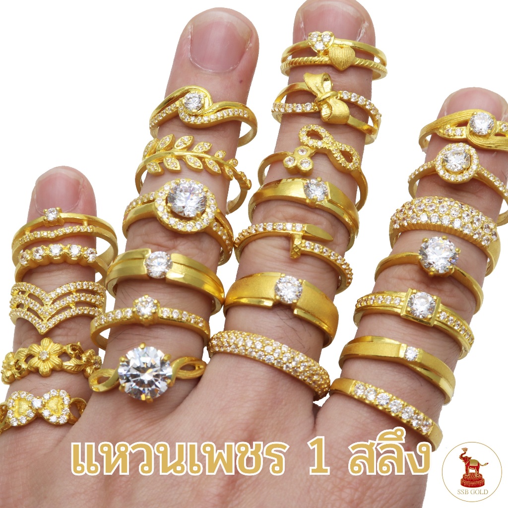 แหวนทอง 1 สลึง ทองแท้ 96.5% ลายเพชรcz มีใบรับประกัน เลือกลายและไซส์แหวนได้ [ผ่อน0%บัตรเครดิต]