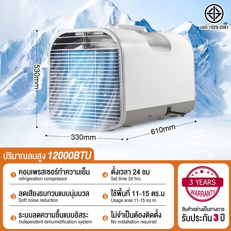 แอร์เคลื่อนที่ แอร์พกพา แอร์ แอร์พกพา แอร์มุ้ง10000BTU (แอร์ พร้อมท่อระบายความร้อน+รีโมทคอนโทรล+6ฟุต*3ฟุตชุดมุ้งแอร)