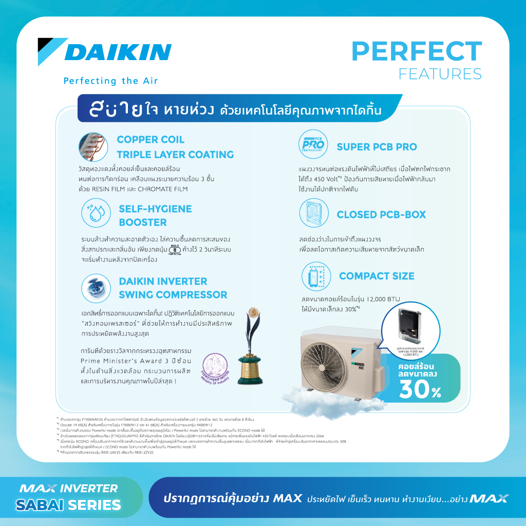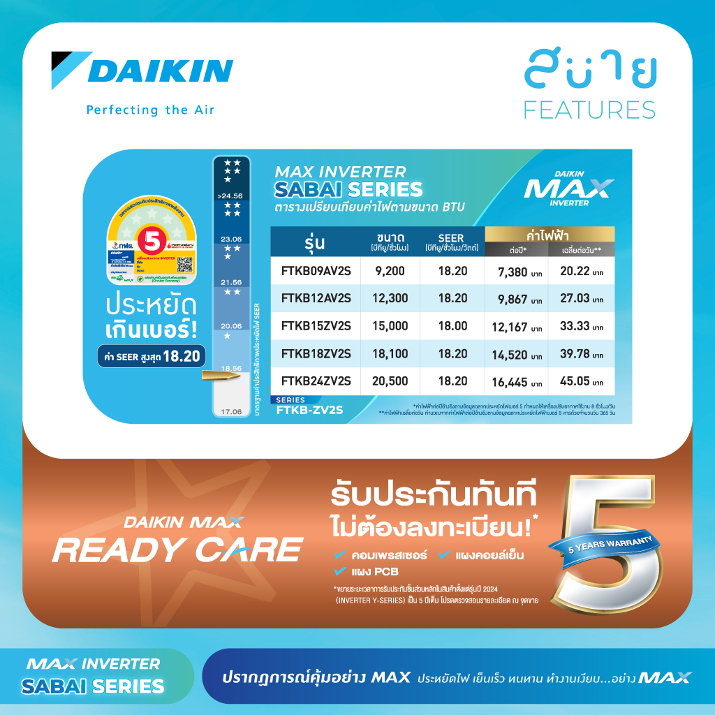 แอร์ไดกิ้น Daikin MAX INVERTER (SABAI SERIES) FTKB-A/Z 9000-24000 BTU (2025-2026)