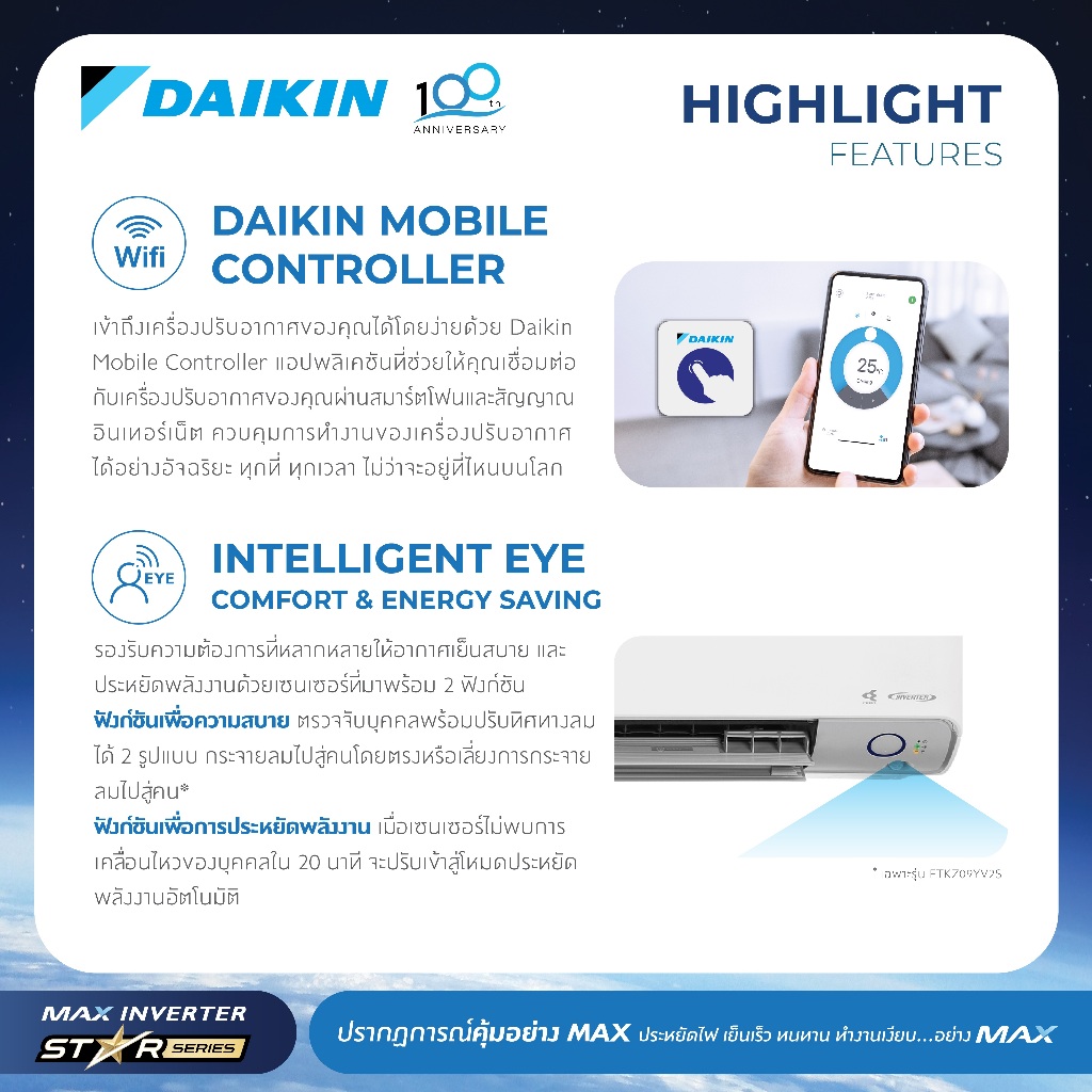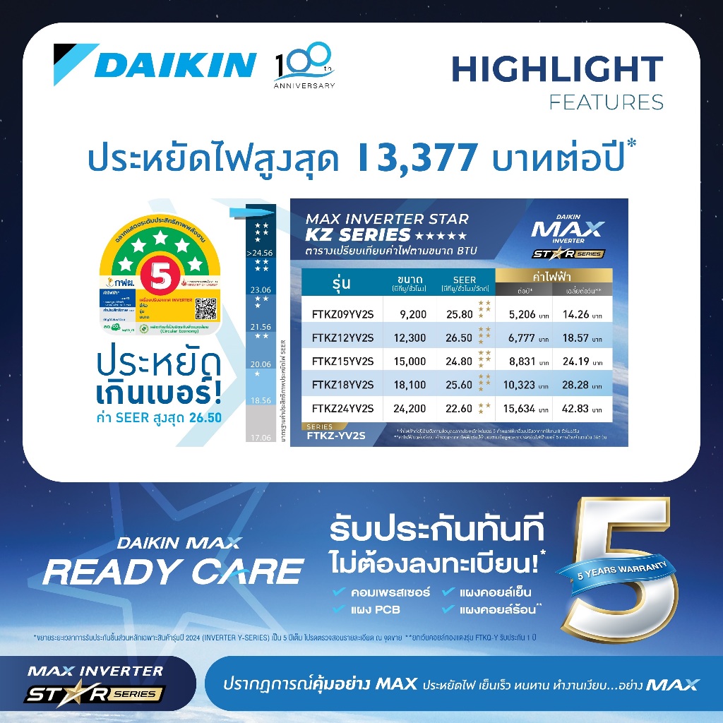 แอร์ไดกิ้น Daikin MAX INVERTER (STAR KZ SERIES) FTKZ-Y 9000-24000 BTU