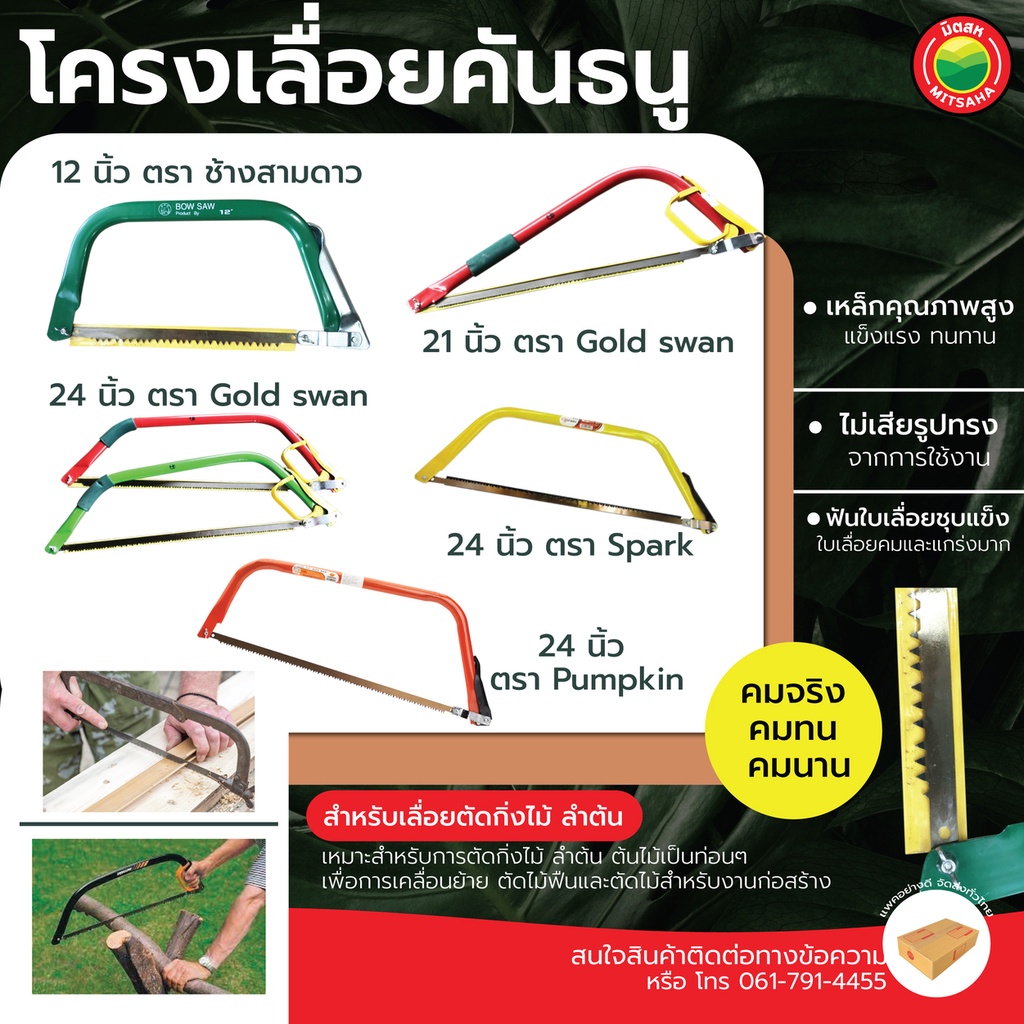 โครงเลื่อยคันธนู ขนาด 12 นิ้ว, 21 นิ้ว, 24 นิ้ว BOW SAW ใบ เลื่อย ตัด คันธนู สามเหลี่ยม ไม้ เหล็ก คมเลื่อย มิตสห Mitsaha
