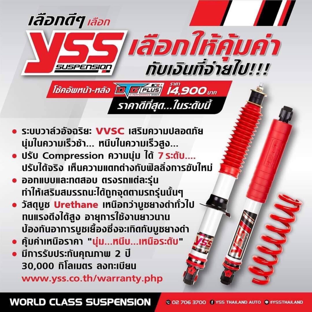 โช๊คอัพหน้า-หลังฟลูเซ็ต YSS DTG Plus ปรับ7ระดับ รับประกันคุณภาพ 2ปี [โช๊คอัพกระบะ]