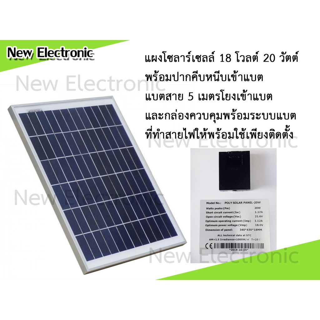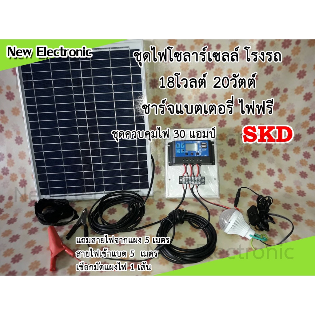 โซลาร์เซลล์ ชาร์จแบตเตอรี่รถยนต์ ชุดชาร์จไฟโรงรถ 20 วัตต์ 18 โวลต์ พร้อมชุดควบคุมไฟจากแผงโซลาร์เซลล์เข้าแบต