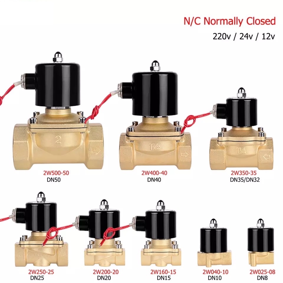 โซลินอยด์ วาล์ว ทองเหลือง ปกติปิด จ่ายไฟเปิด 12VDC 24VDC 220V 1/4 นิ้ว 1/2 นิ้ว 3/4 นิ้ว 1นิ้ว1.5 นิ้ว 2 นิ้ว