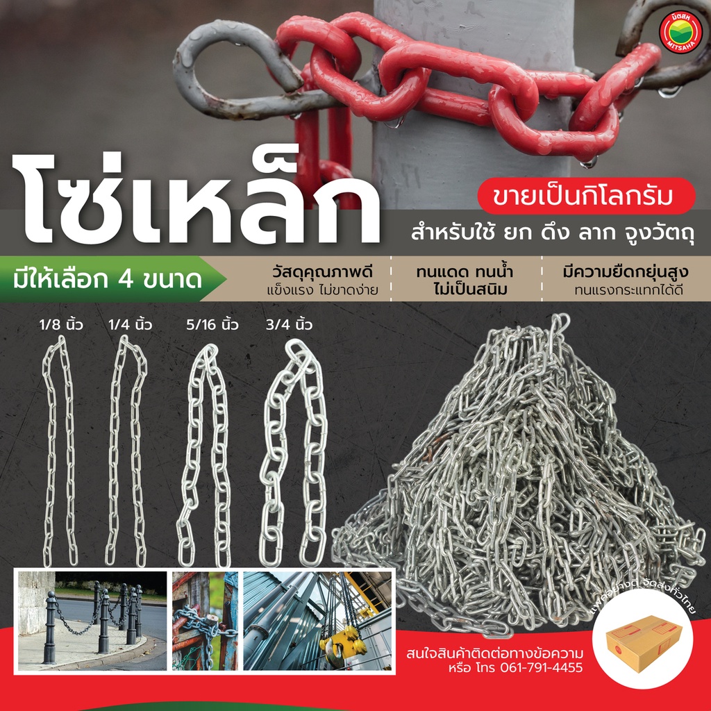 โซ่เหล็ก ขนาด 1/8", 1/4", 5/16", 3/4" IRON CHAIN ขายเป็นกิโลกรัม โซ่ ล่าม ขาว คล้อง ประตู ชุบ ซิงค์ขาว สังกะสี ผูก มิตสห