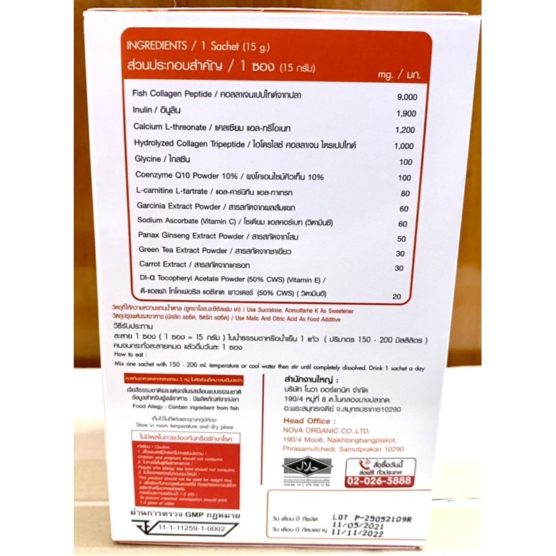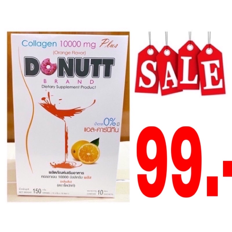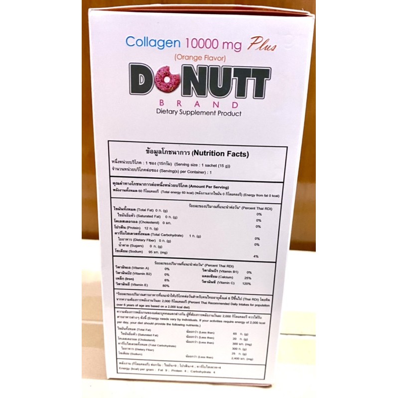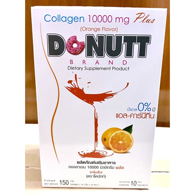โดนัทท์คอลลาเจน 10,000mg. กลิ่นส้ม พลัส 15 กรัม ขนาด 10 ซอง