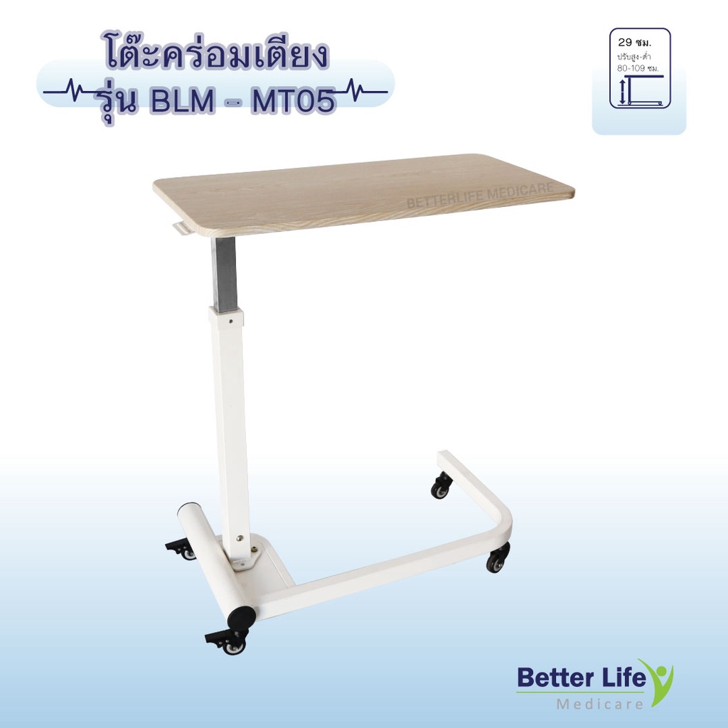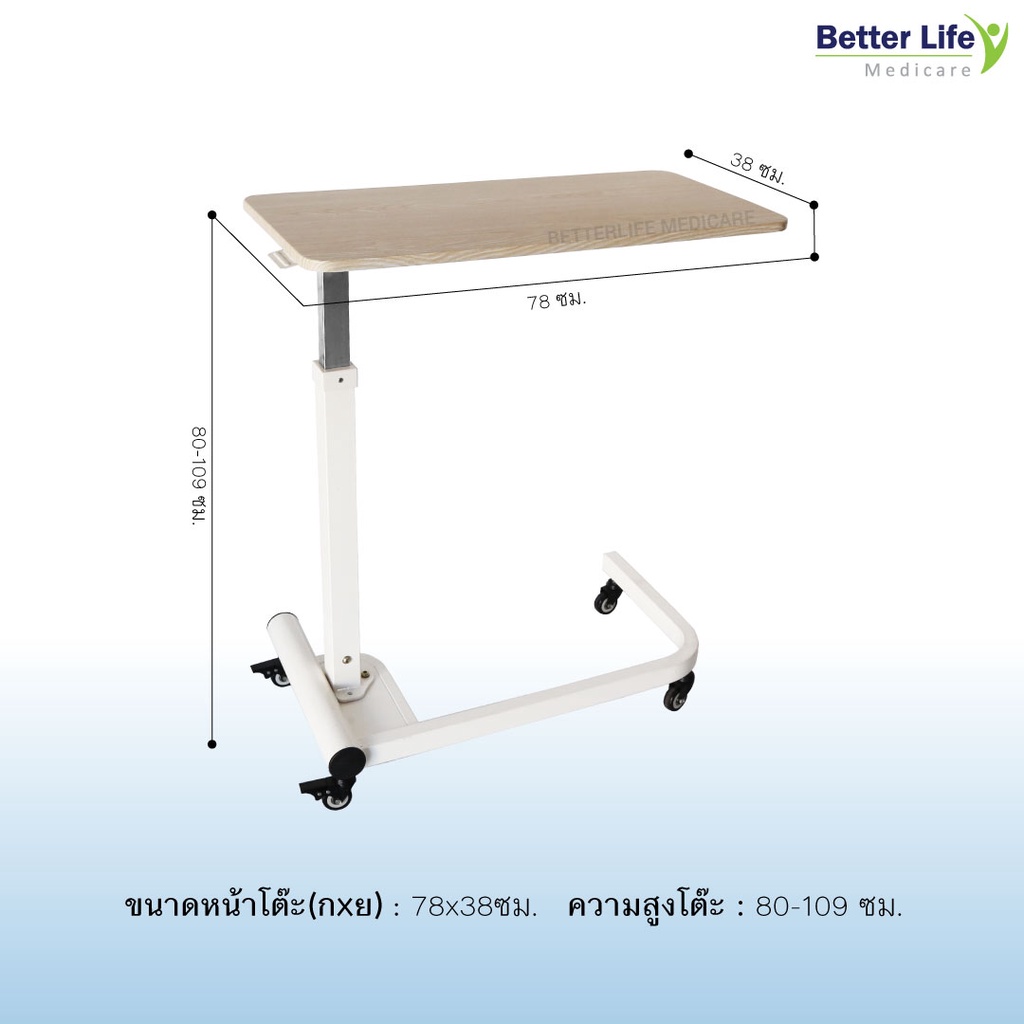 โต๊ะคร่อมเตียงแบบไม้ ปรับสูง-ต่ำ ระบบไฮโดรลิค (ขายลดราคา 50% เนื่องจากสินค้ามีรอยเล็กน้อย)