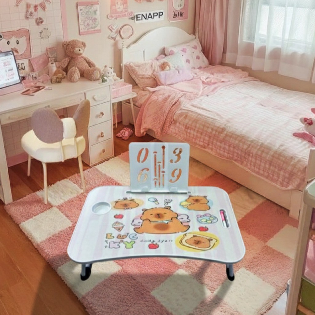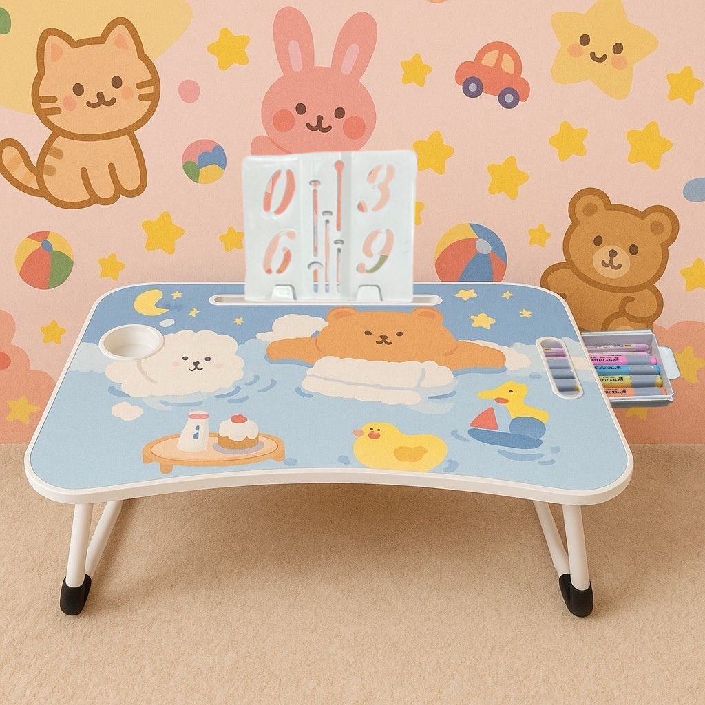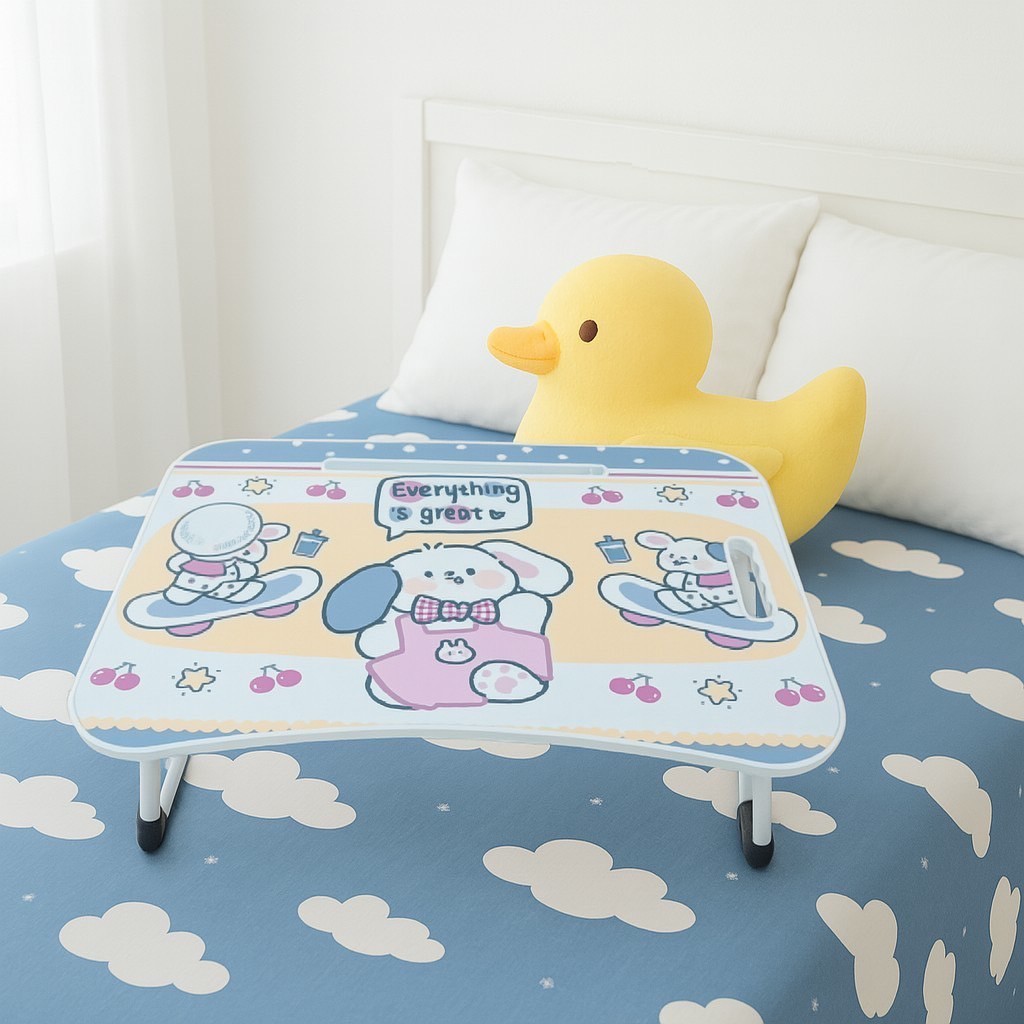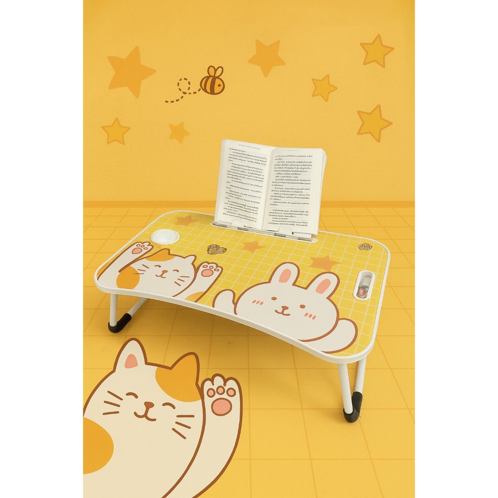 โต๊ะพับญี่ปุ่นรุ่นใหม่ ลายการ์ตูนขอบโต๊ะสีขาว/ขอบสีเดียวกับสีโต๊ะ ขนาด 40*60*28 cm พร้อมใช้งาน