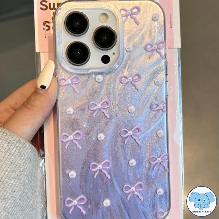 โบว์สีชมพูหวานเข้ากันได้เคสไอโฟน 17 air 16 13 11 15 12 14 Pro Max XR 16 14 15 7 8 Plus XS MAX X SE ไข่มุกแฟชั่น TPU