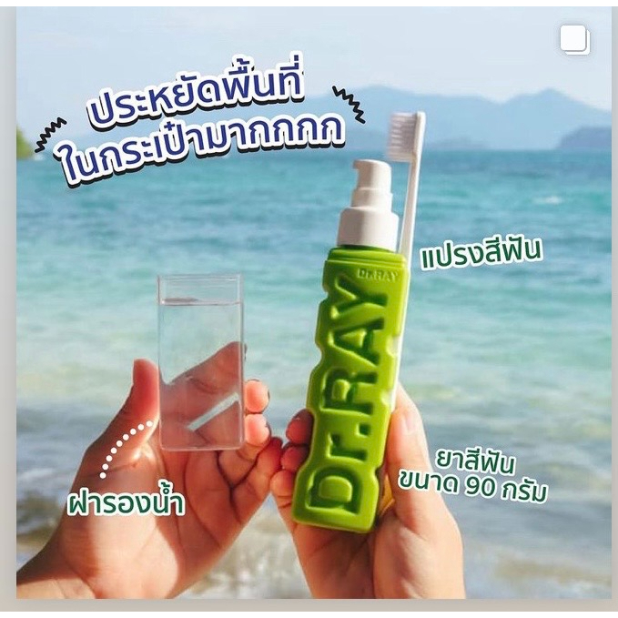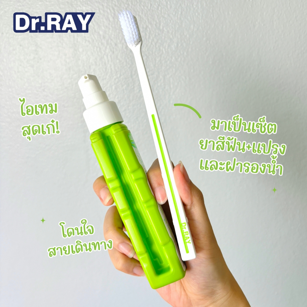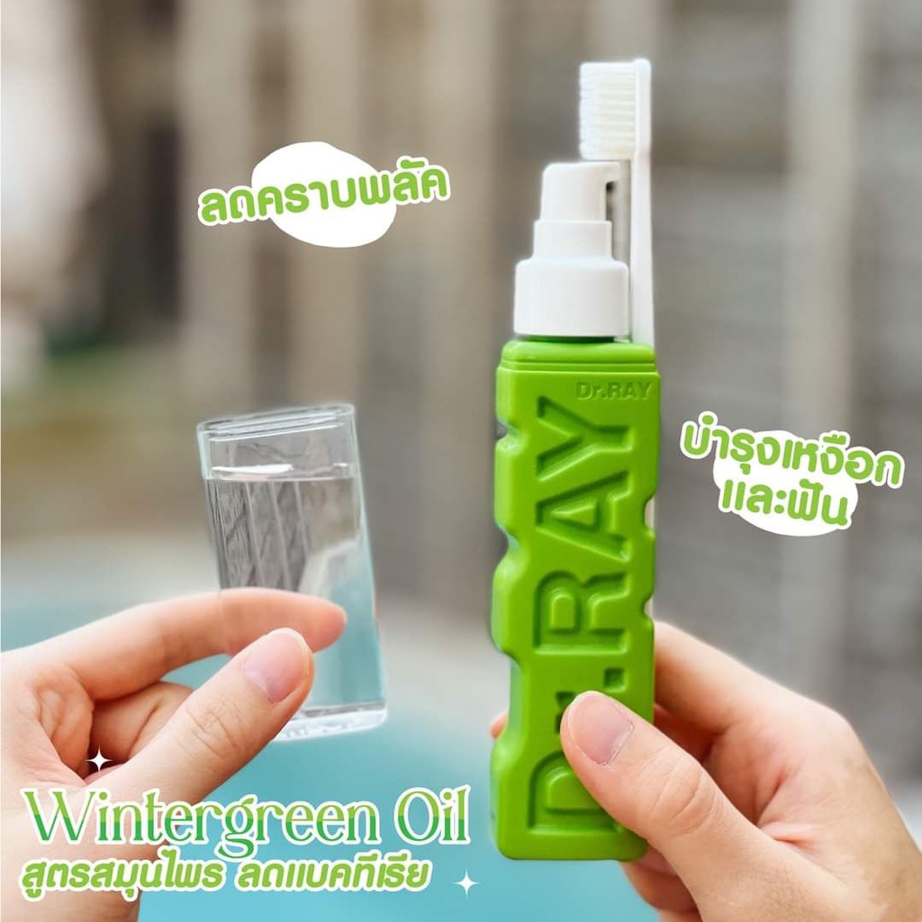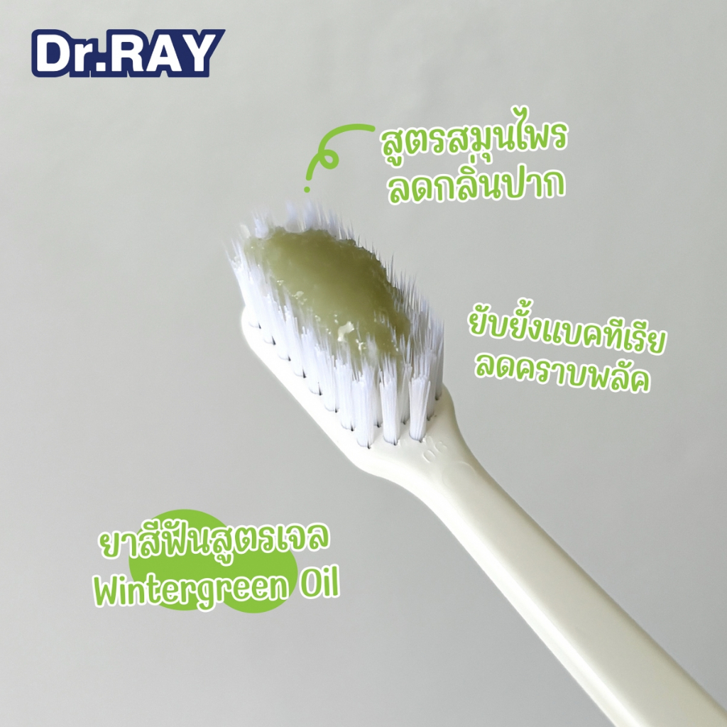 โปรลดสต๊อค! EXP: 4/2569 Dr.RAY ยาสีฟันเจลขวดหัวปั๊ม 90g. พร้อมแปรงสีฟันประกบด้านข้าง สูตร Wintergreen Oil No.T3C
