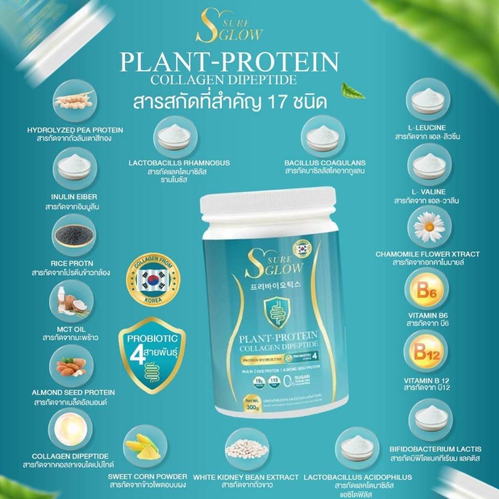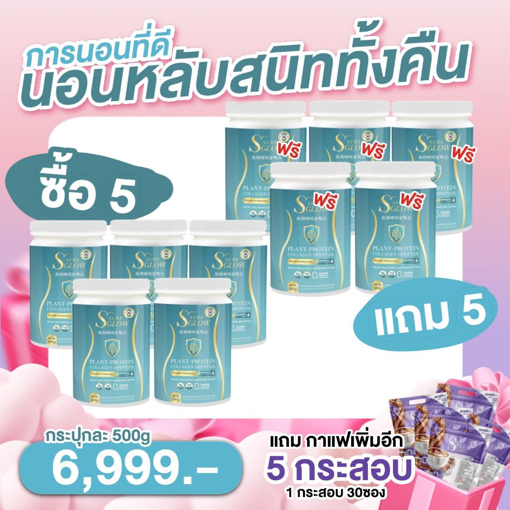 โปร 5 แถม 5 โปรตีนเอสชัวร์โกลว์ ขนาด500g. รสจืด กระปุกฟ้า(แถมเพิ่มกาแฟกระสอบ5กระสอบ)