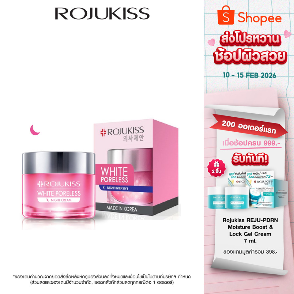 โรจูคิส ไวท์ พอร์เล ส ไนท์ ครีม Rojukiss White Poreless Night Cream 45 มล. ( ครีมเกาหลีแท้ สกินแคร์ เกาหลี ไนท์ครีม )