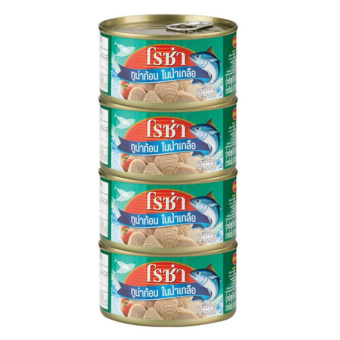 โรซ่าทูน่าก้อนในน้ำเกลือ ขนาด 185 กรัม แพ็ค 4 กระป๋อง