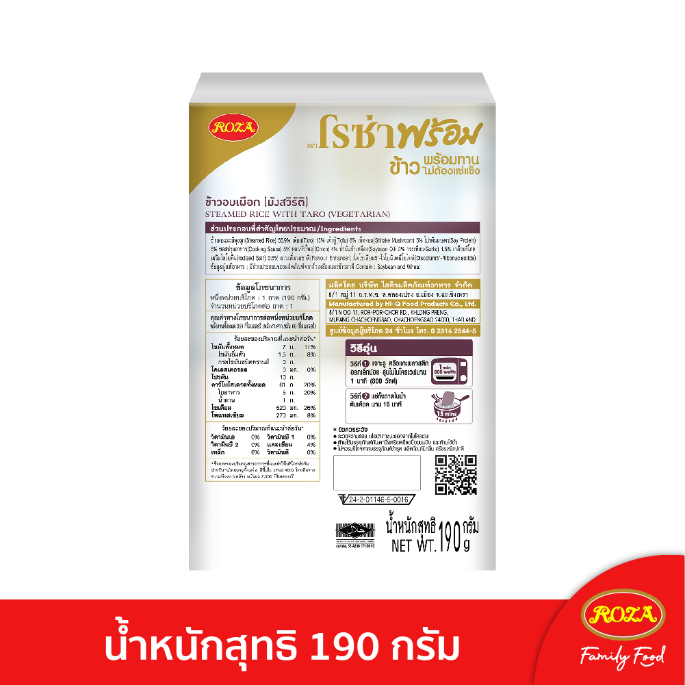 โรซ่าพร้อม เอ็กซ์ตร้า อาหารพร้อมทาน เมนูข้าวอบเผือก(มังสวิรัติ) ขนาด 190 กรัม