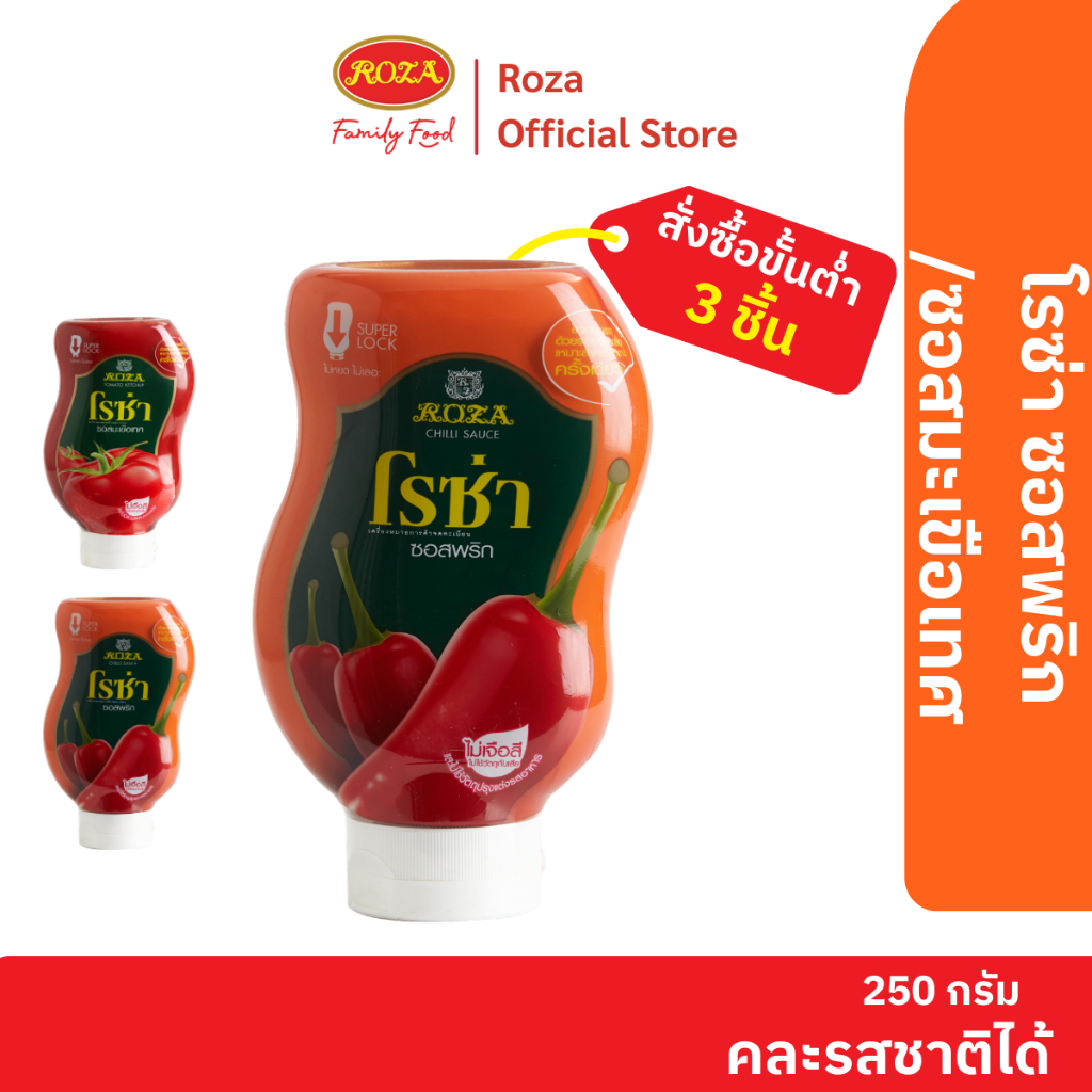 โรซ่า ซอสพริกขวดบีบ Roza Squeeze ขนาด 250 กรัม (คละซอสมะเขือเทศ 250 กรัมได้)