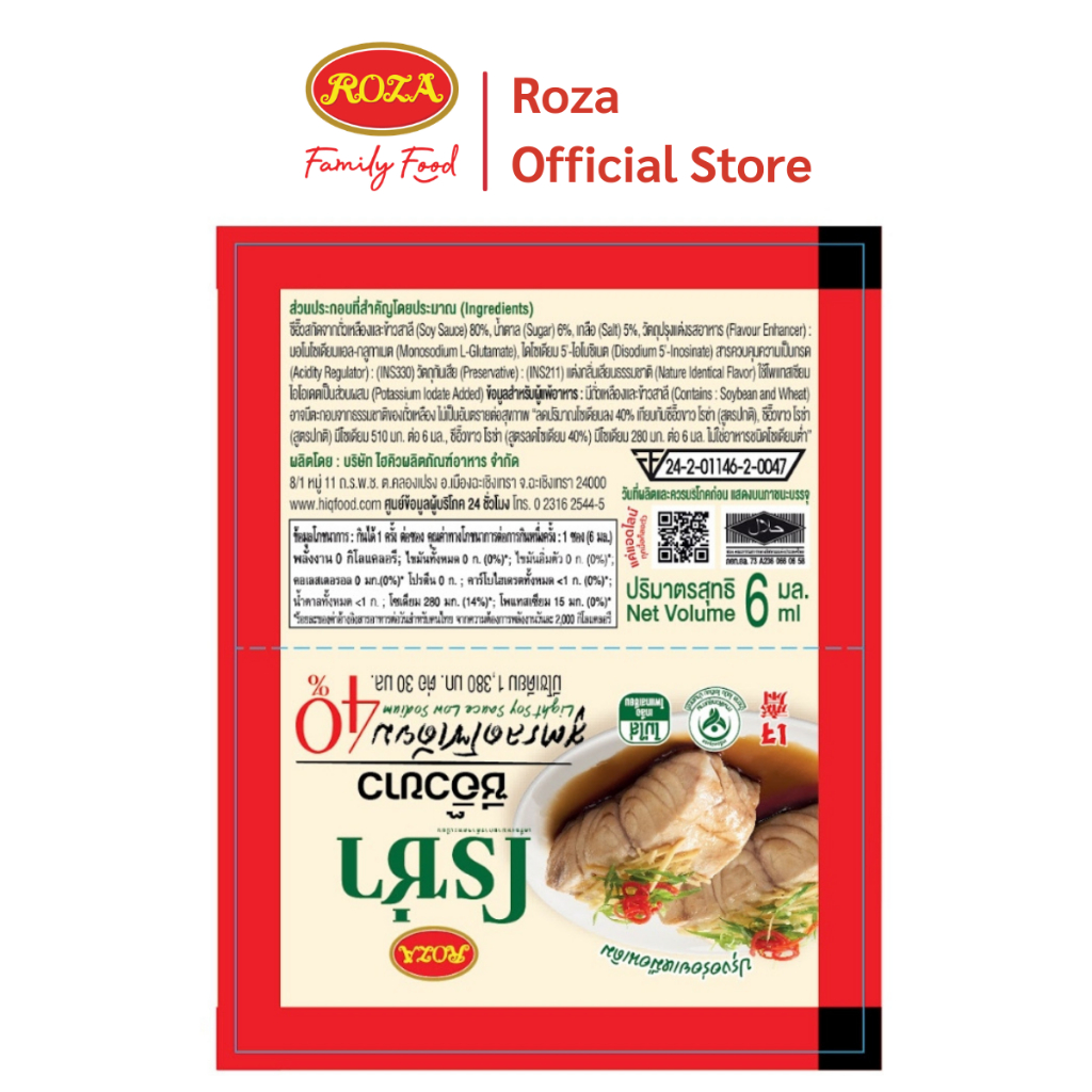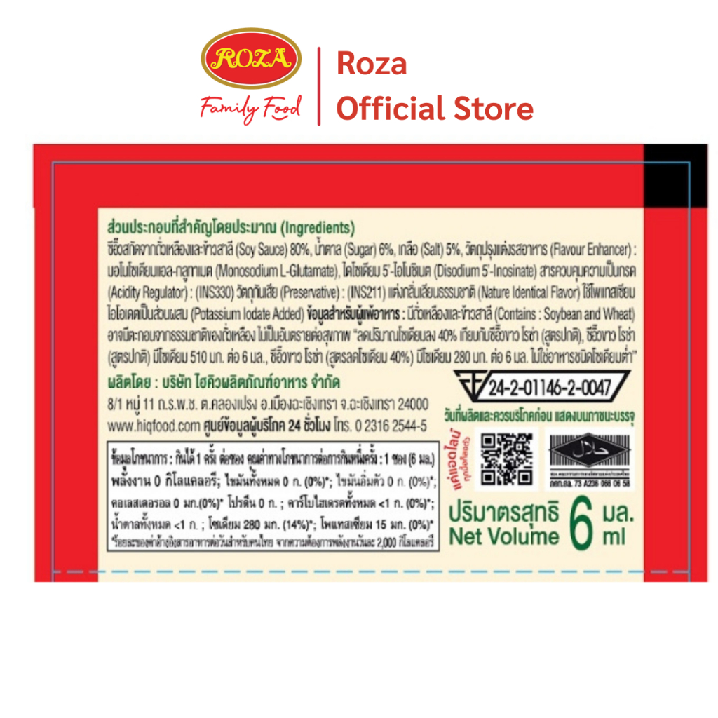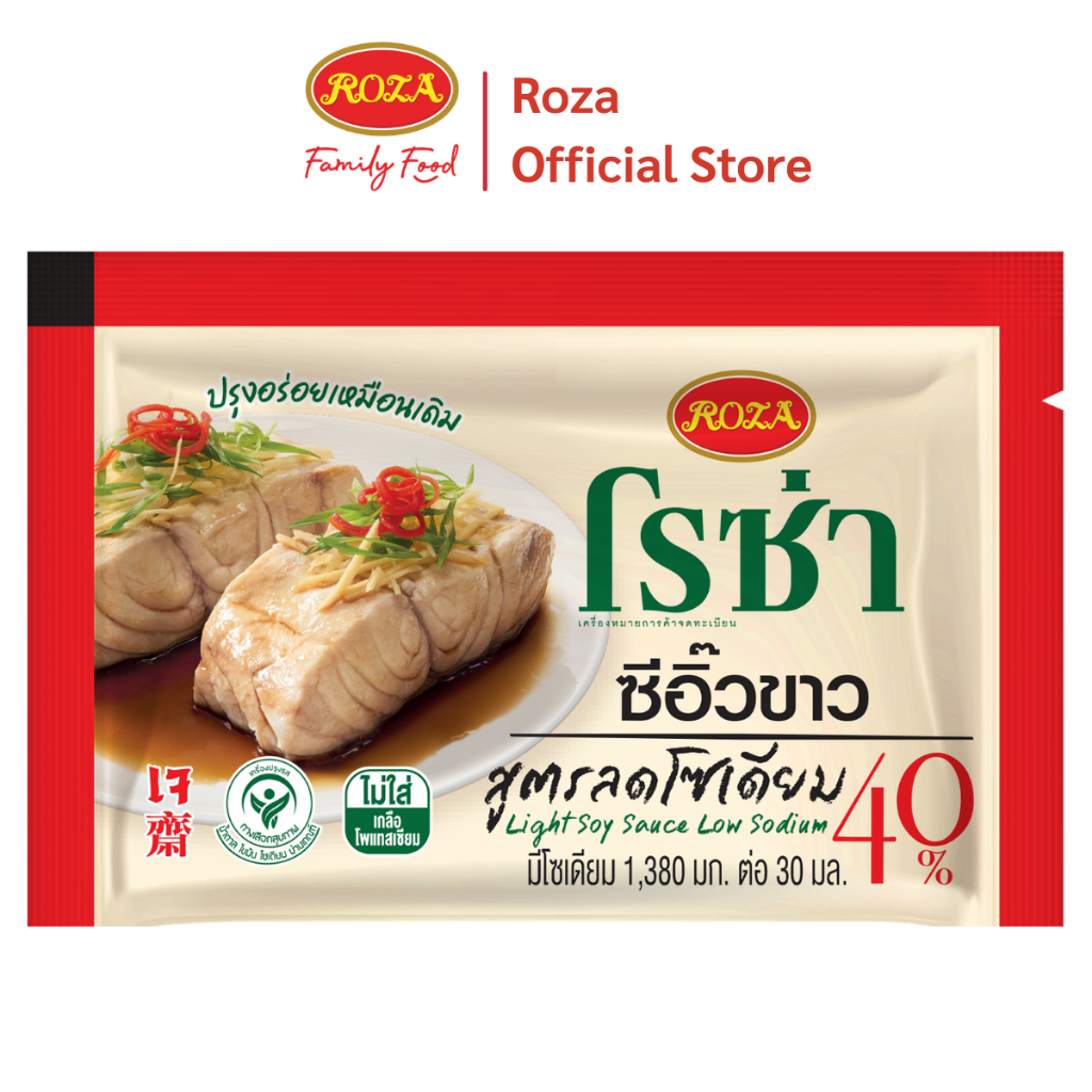 โรซ่า ซีอิ๊วขาวสูตรลดโซเดียม 40% ขนาด 6 ml. แพ็ค 100 ซอง