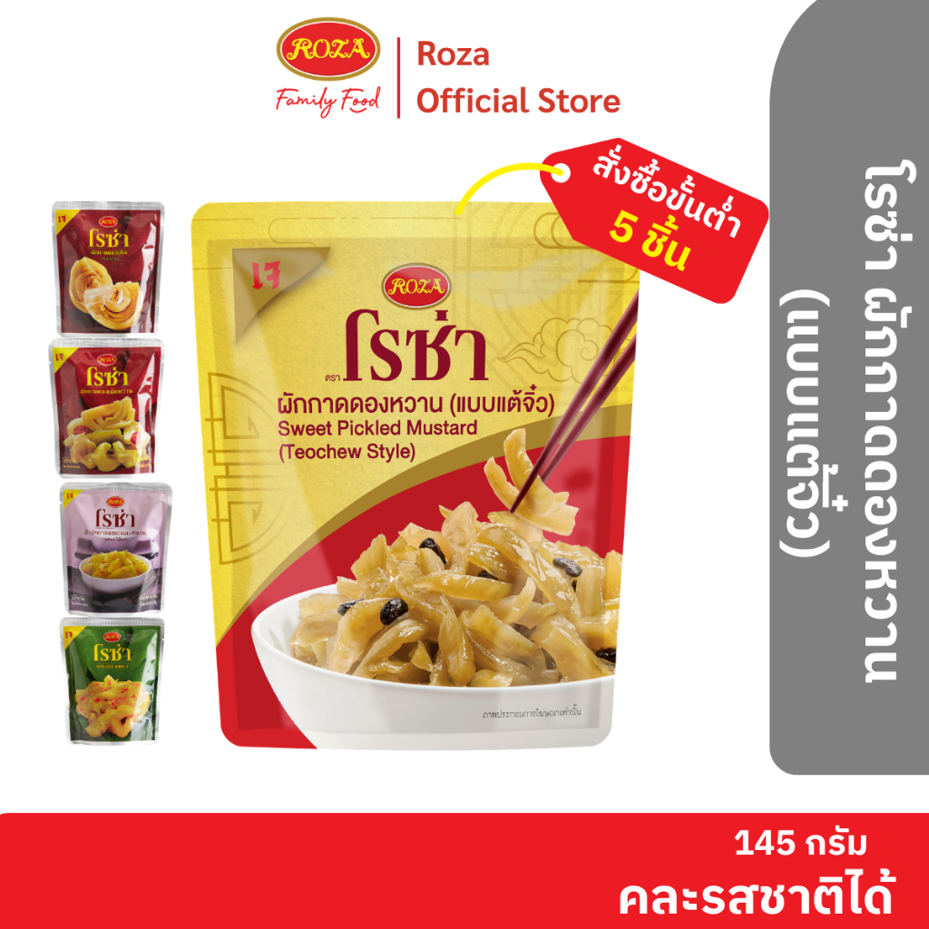 โรซ่า ผักกาดดองหวาน (แบบแต้จิ๋ว) บรรจุซอง ขนาด 145 กรัม สามารถเลือกคละรสชาติได้ 5 รสชาติ