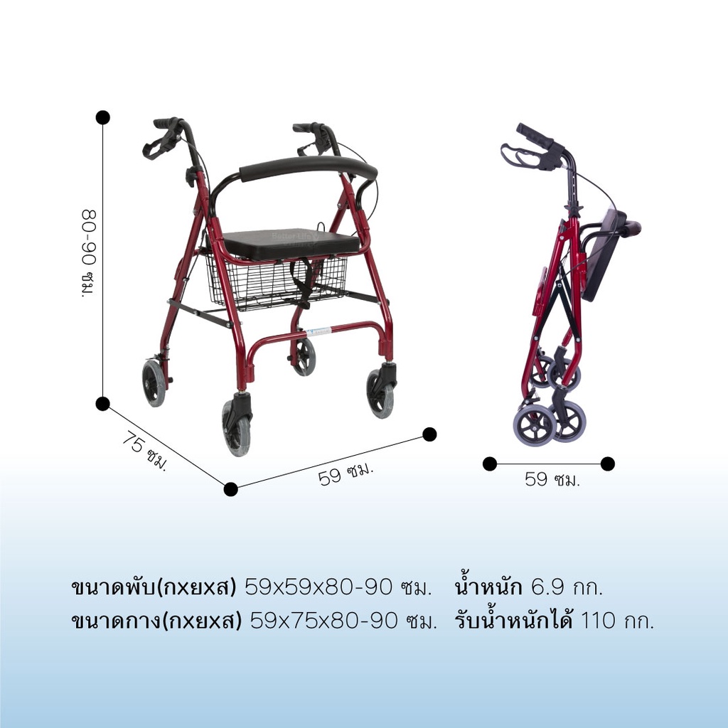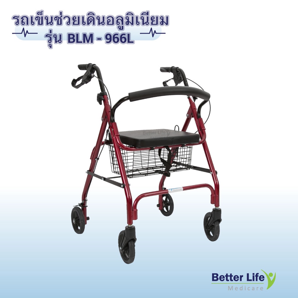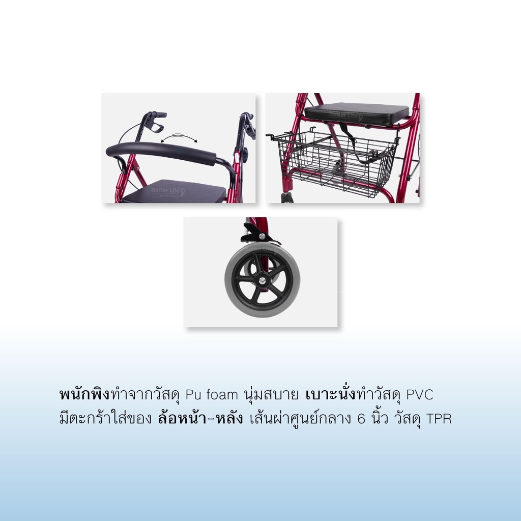 โรเลเตอร์ ล้อ 6 นิ้ว รถเข็นช่วยพยุงเดิน-นั่ง มีเบรคมือ พร้อมตะกร้าใส่ของ