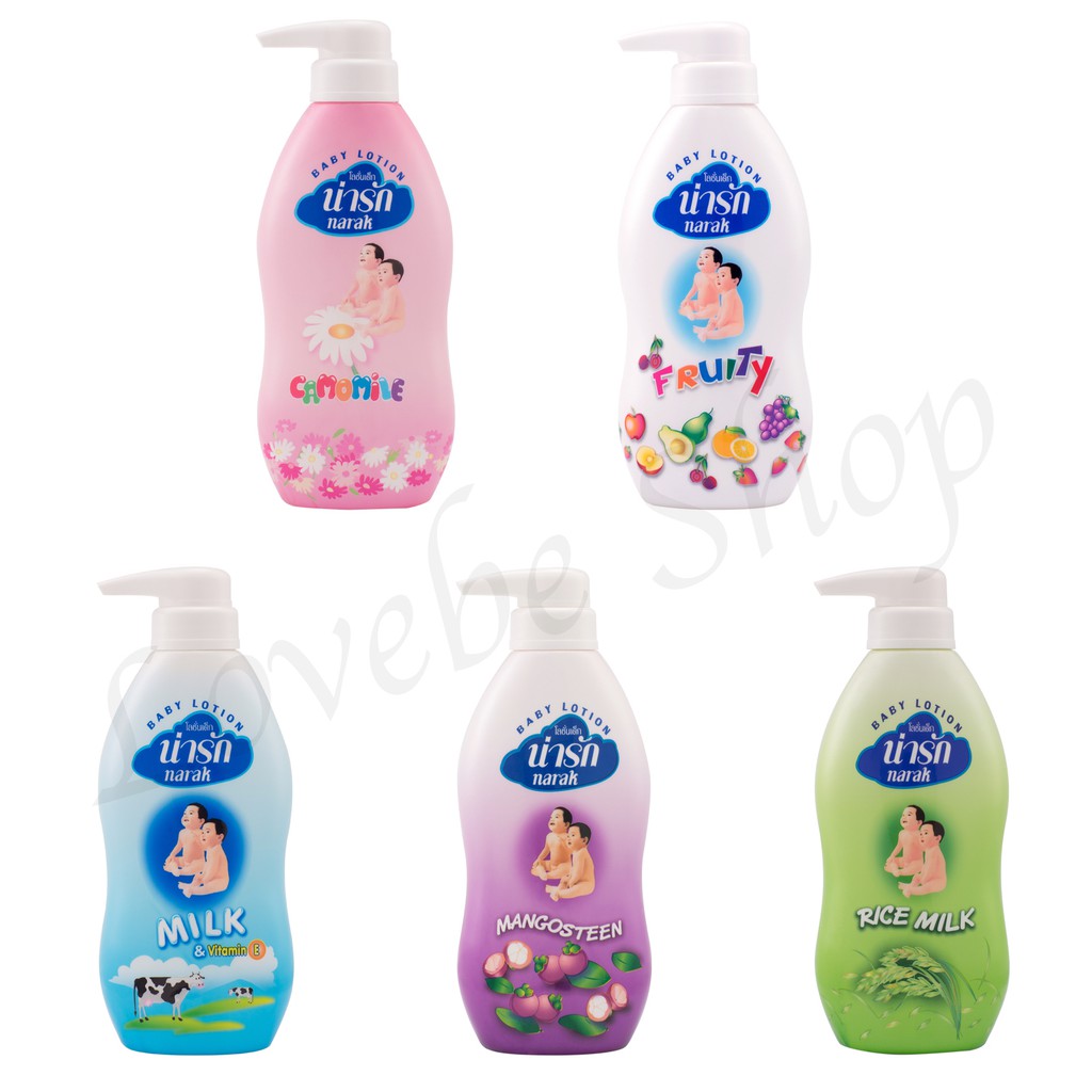 โลชั่นเด็ก น่ารัก 500ml. (คาโมมายล์, ฟรุตตี้, มิลค์, มังคุด, น้ำนมข้าว)