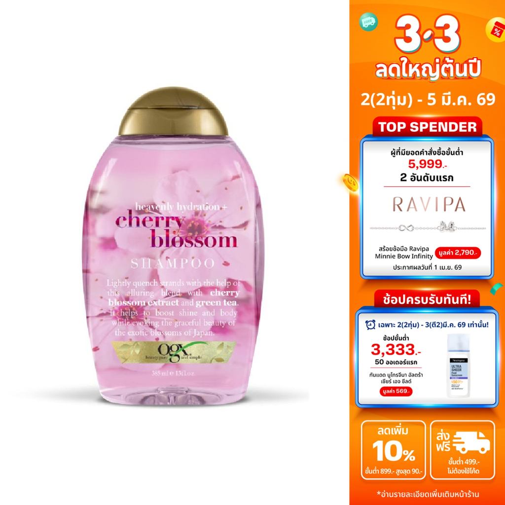 โอจีเอ็กซ์ แชมพู เฮฟเว่นลี่ ไฮเดรตติ้ง เชอร์รี่ บลอสซัม 385 มล. OGX Heavenly Hydrating Cherry Blossoms Shampoo 385 ml.