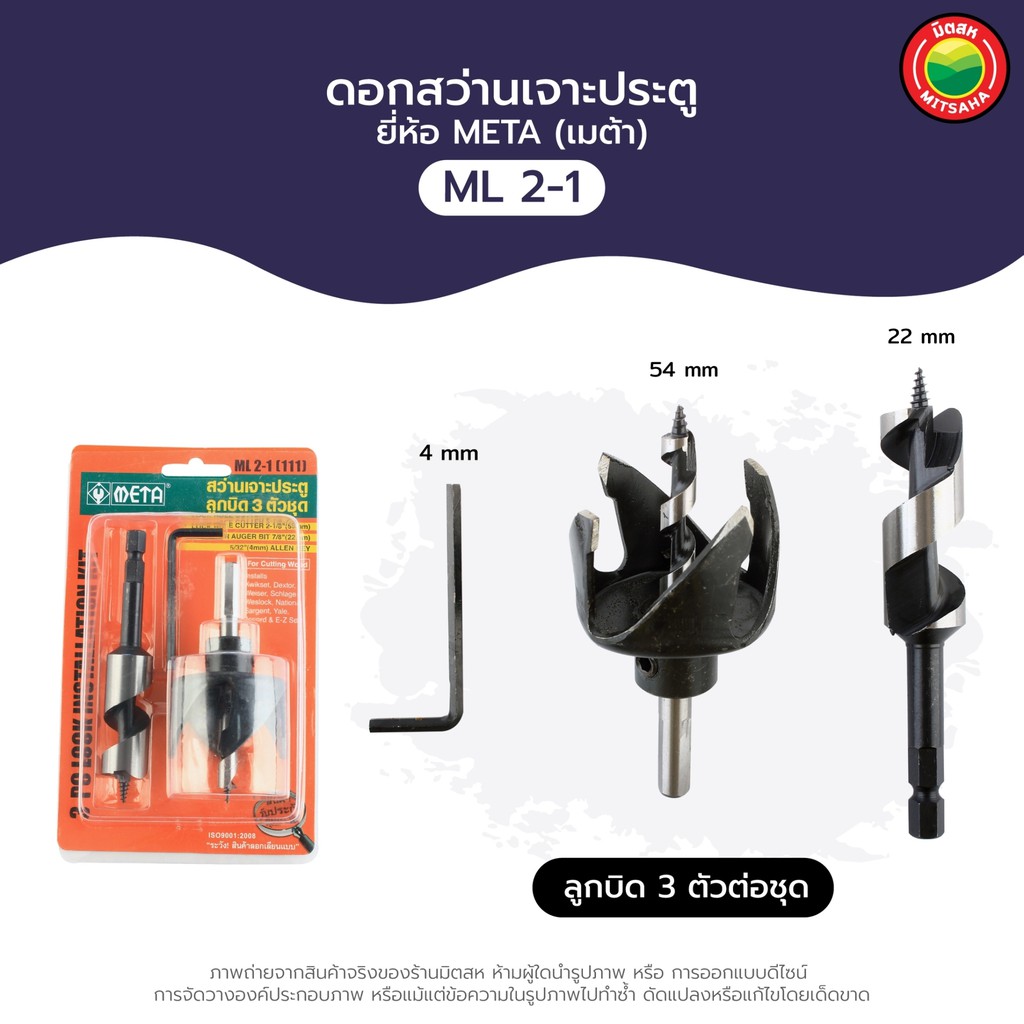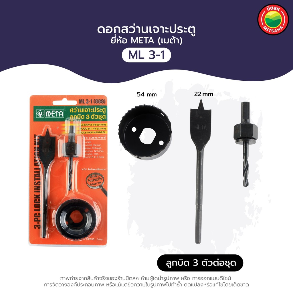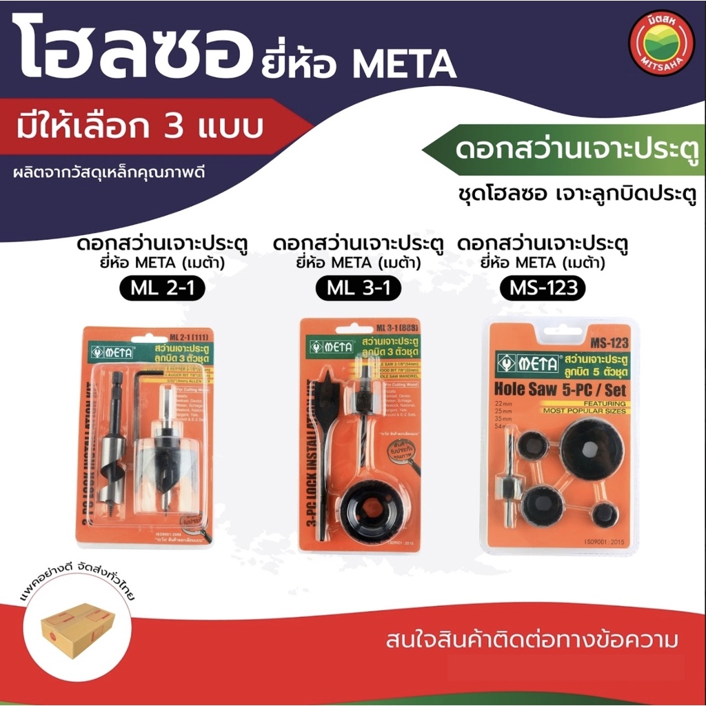 โฮลซอ โฮซอ META ดอก เจาะ ประตู เมต้า ML 2-1,ML 3-1,MS-123 HOLE SAW โฮวซอว์ กลม ฟัน เลื่อย ลูก บิด สว่าน ไม้ ฝ้า มิตสห