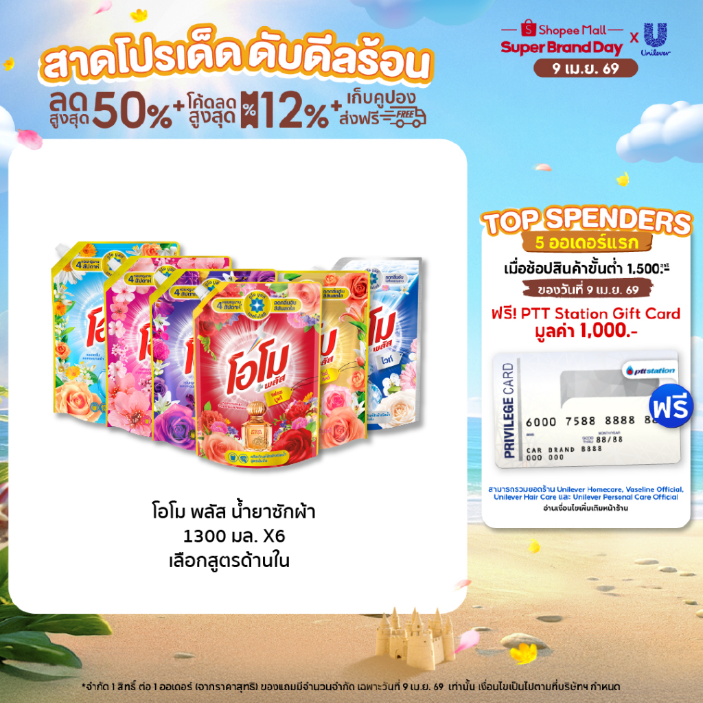 [ยกลัง] โอโม พลัส น้ำยาซักผ้า 1300 มล. x6 Omo Plus Liquid 1300 ml. x6