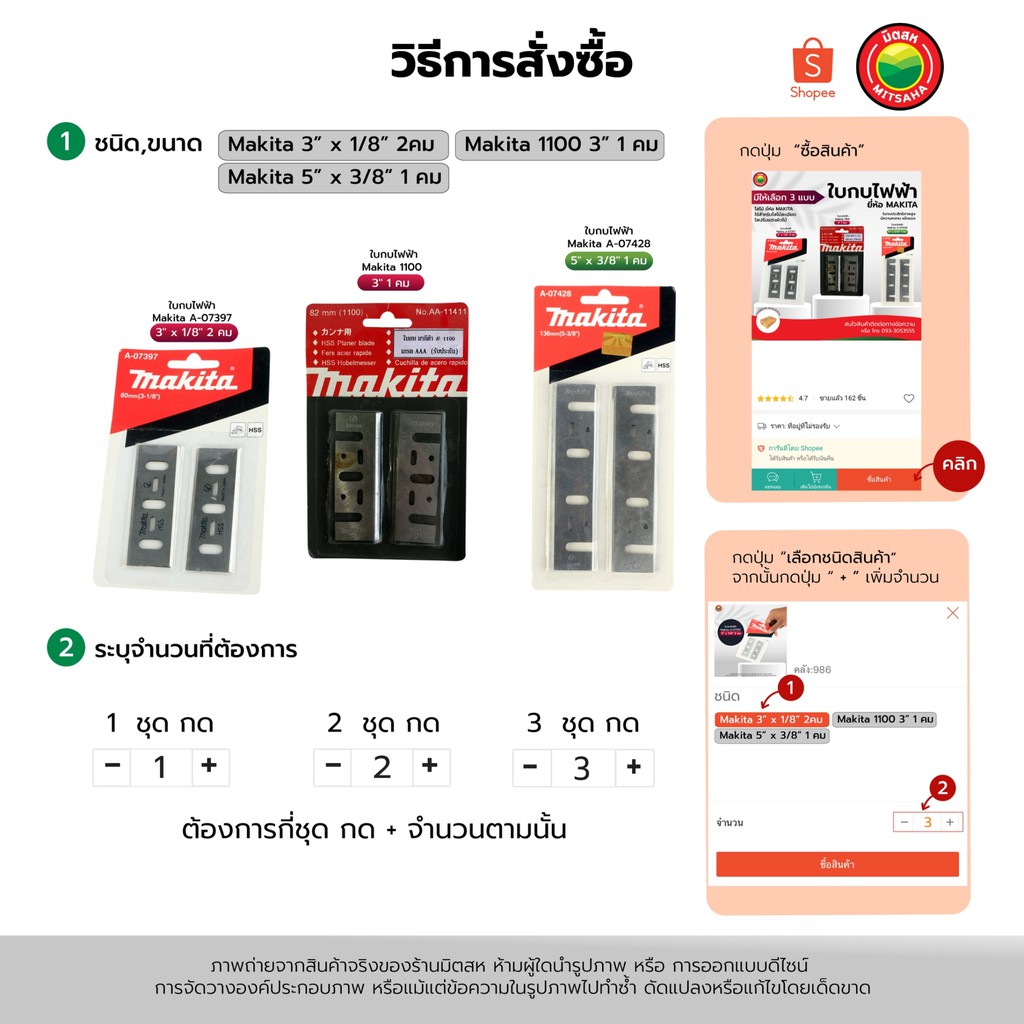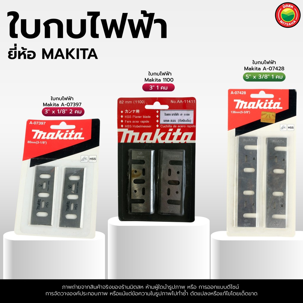 ใบกบไฟฟ้า กบไสไม้ มากีต้า Makita ขนาด 3"นิ้ว, 5"นิ้ว 1 ชุด มี 2 ใบ PLANER BLADE ใบมีด ปรับ ตัด แต่ง เนื้อไม้ มิตสห