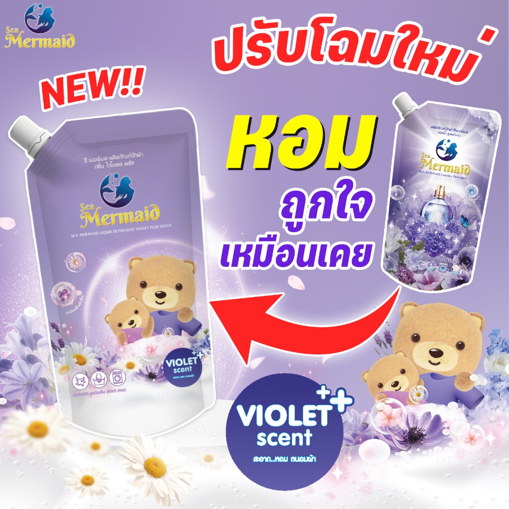 ใหม่! Sea Mermaid น้ำยาซักผ้าซีเมอร์เมด 4000 มล.(800มล.x5ซอง) กลิ่น Violet