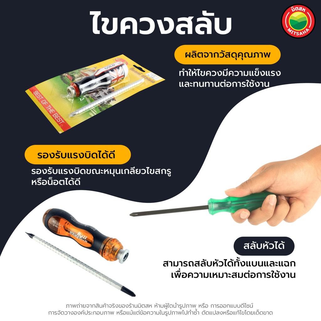 ไขควง สลับ ลองไฟ ปาก แบน ปาก สี่แฉก ตอกได้ หัว แม่เหล็ก SCREWDRIVER บลูเทค โกลด์ สวอน Gold Swan ฟิลลิปส์ Sentoshi มิตสห