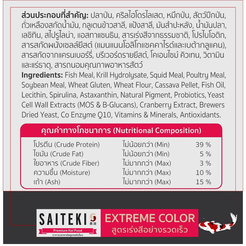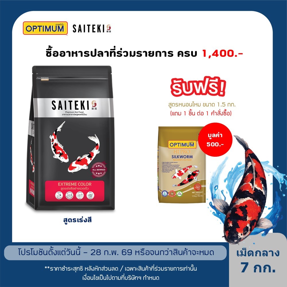 ไซเตกิ อาหารปลาคาร์พ เร่งสี เม็ดกลาง 7 กก. I SAITEKI Slow Extreme Color Medium Pellet 7kg.