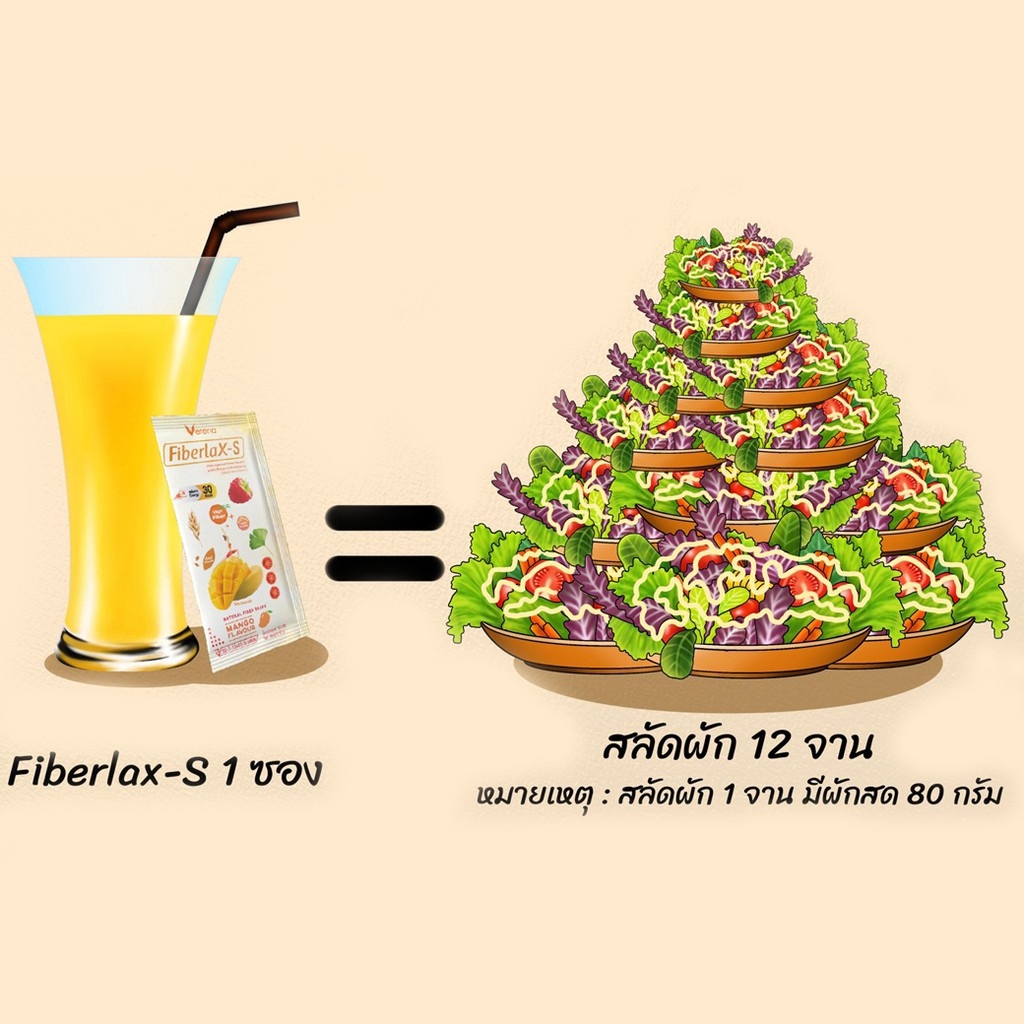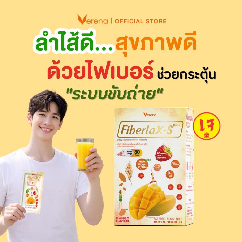 Verena Fiberlax-S Plus ไฟเบอร์ รสมะม่วง ช่วยขับถ่าย ผักผลไม้รวม 45 ชนิด(1กล่อง10ซอง) [ส่งไวมากคร๊าบ]