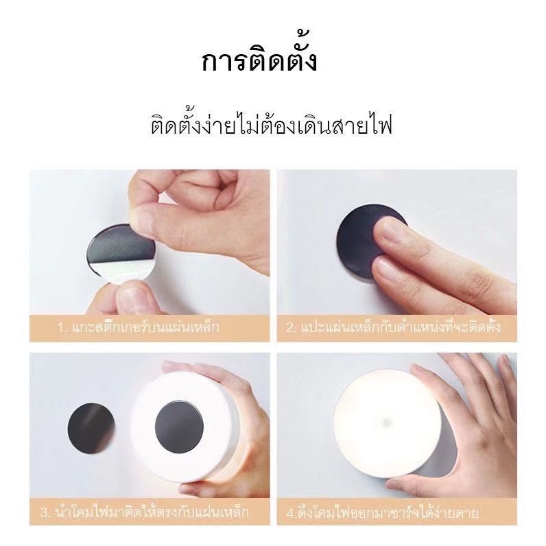 ไฟ LED ไร้สาย แบบชาร์จไฟ USB เซ็นเซอร์จับการเคลื่อนไหว