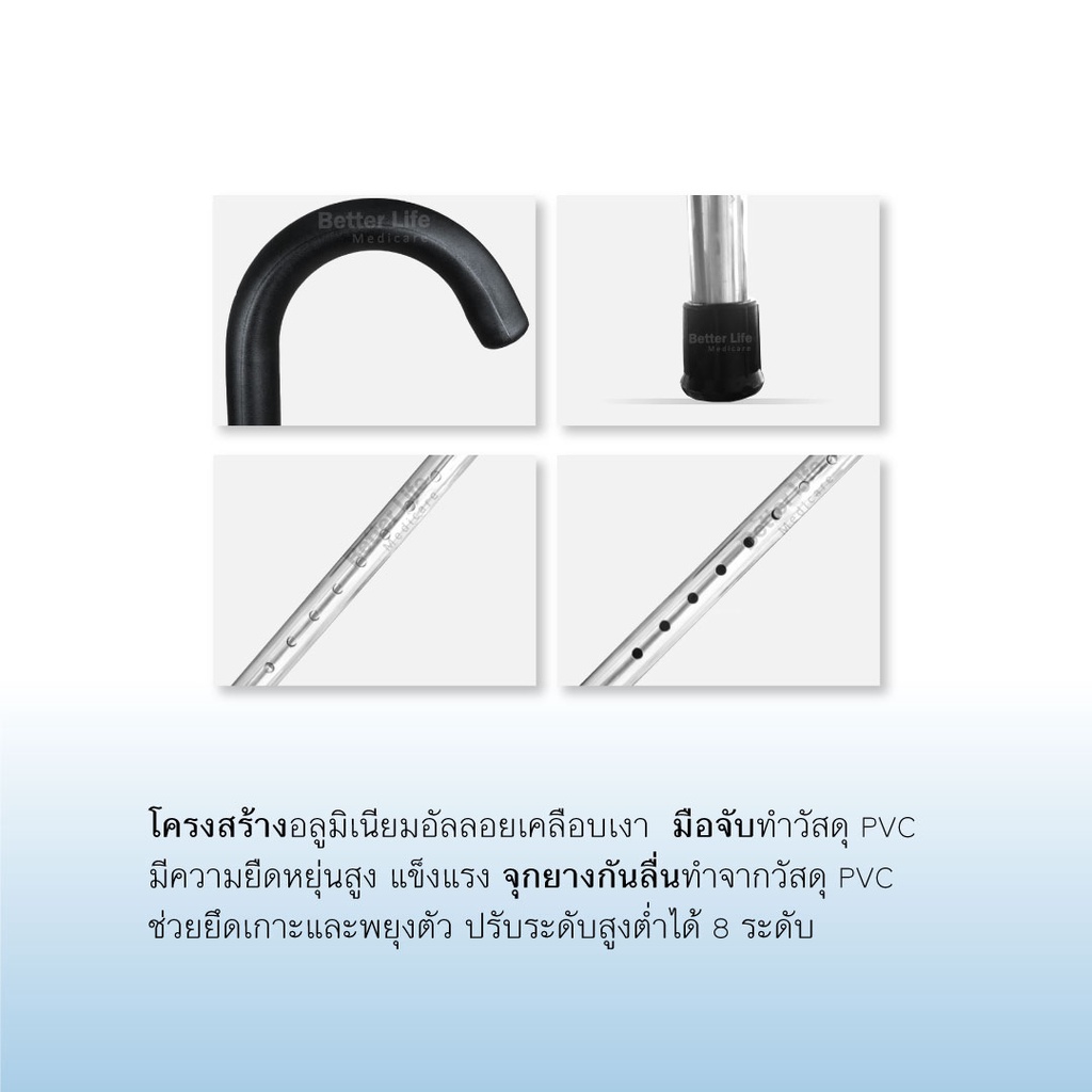 ไม้เท้าก้านร่ม อลูมิเนียม น้ำหนักเบา ปรับระดับได้