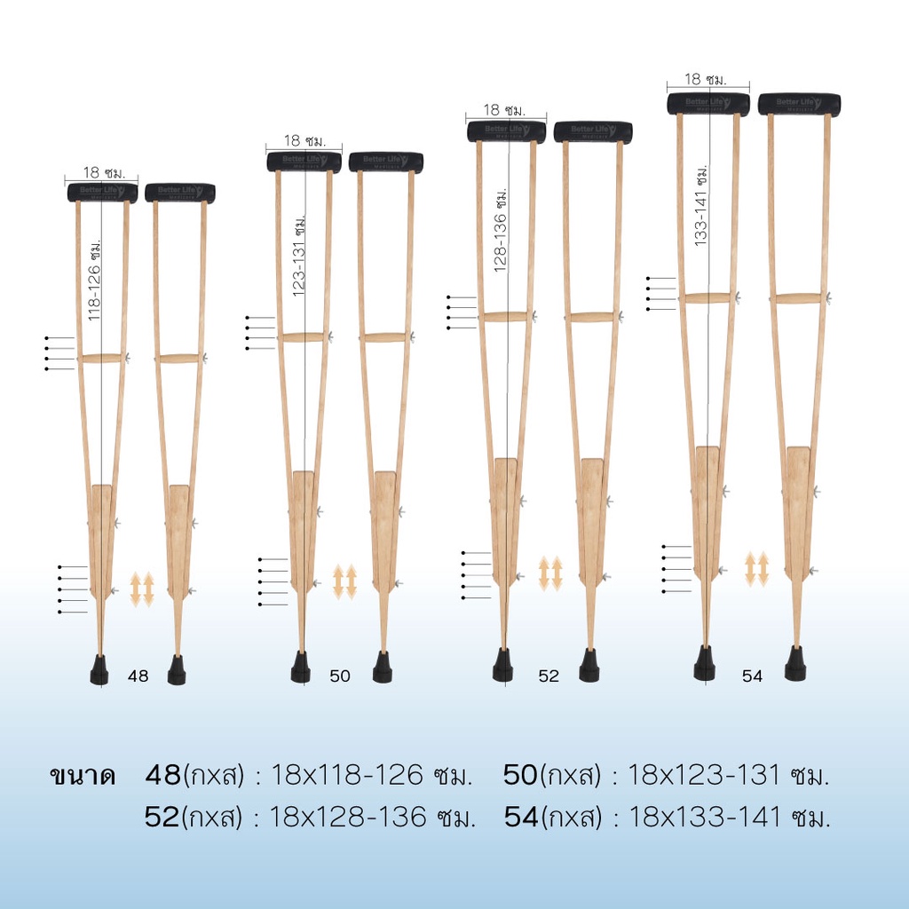 ไม้เท้าค้ำยันแบบไม้ มี 4 ไซส์